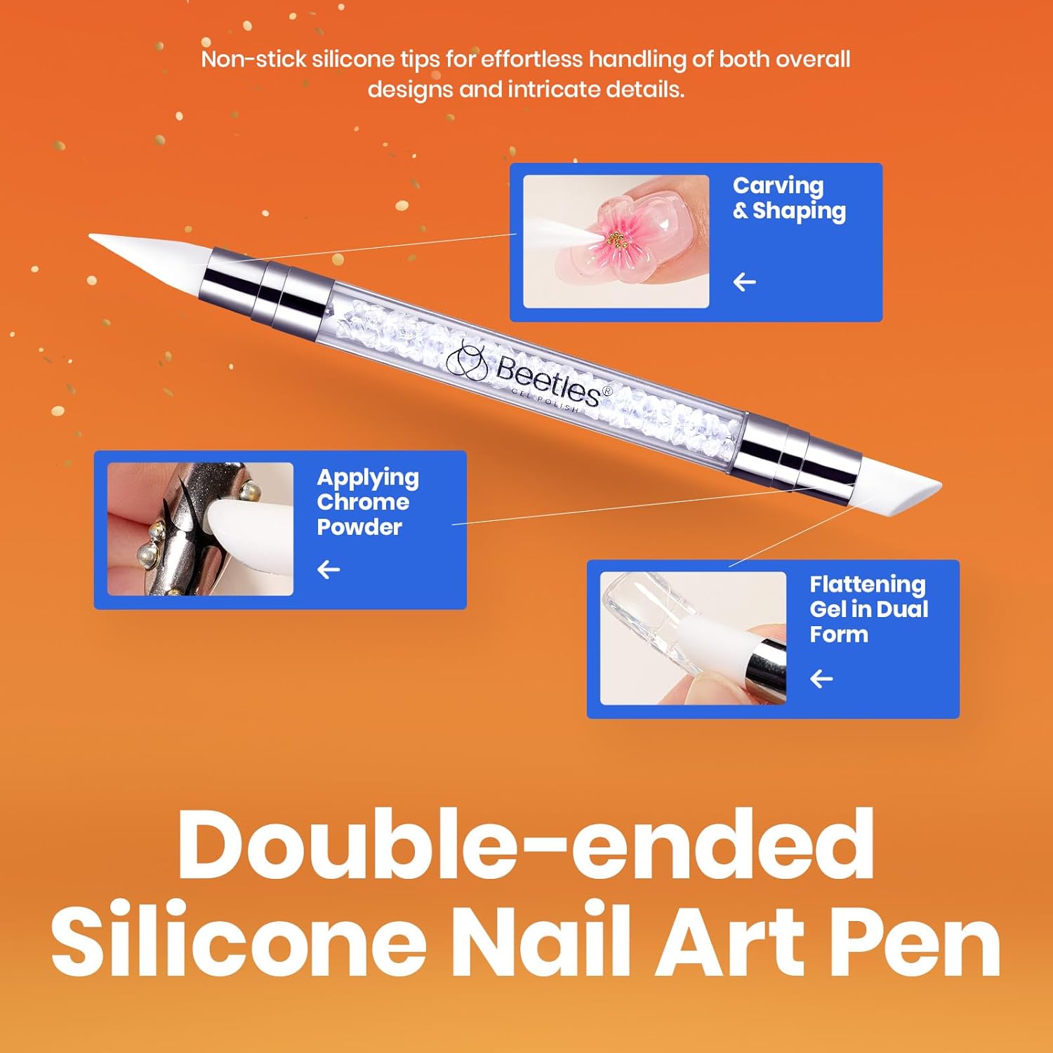 • With Dual-Ended Sculpture Pen: Comes with chrome nail powder and a thoughtfully designed dual-ended silicone pen. The silicone material resists sticking to the gel, while the dual-ended design allows for both broad and intricate detailing, ensuring a flawless finish for your nail art.(Tips:THE SOLID BUILDER GEL MAY BE HARD AT LOW TEMPERATURE,PLEASE PUT IT INTO WARM WATER FOR FEW MINUTES BEFORE USE.AND PLEASE KEEP THE 3D NAIL ART GEL IN A COOL PLACE WHEN THE WEATHER IS HOT. )