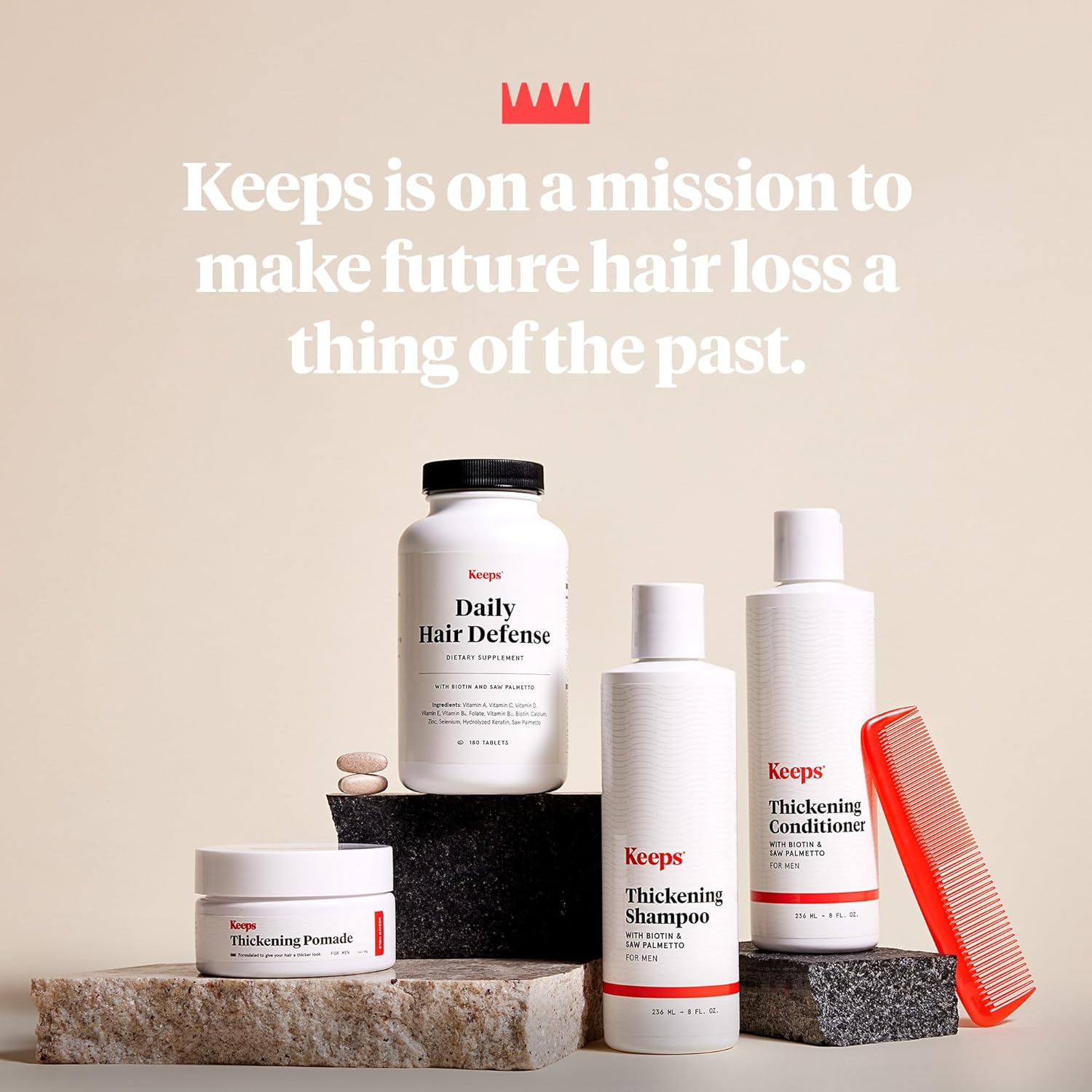 • If you've gone from barely noticing your hairline to obsessing over it every day, you know better than anyone: Losing your hair sucks. We built Keeps to give guys across the country an affordable, expert-backed plan.