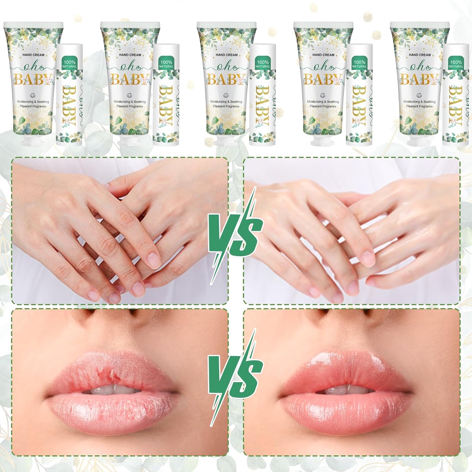 • 【Baby Shower Thank You Gifts】Our hand cream and lip balm is designed with green eucalyptus leaves,symbolizing the gifts of nature and the beauty and happiness in life.The golden"Oh Baby"lettering perfectly fits the theme of the baby gift party.It's an excellent gift to give to customers as a thank-you gift