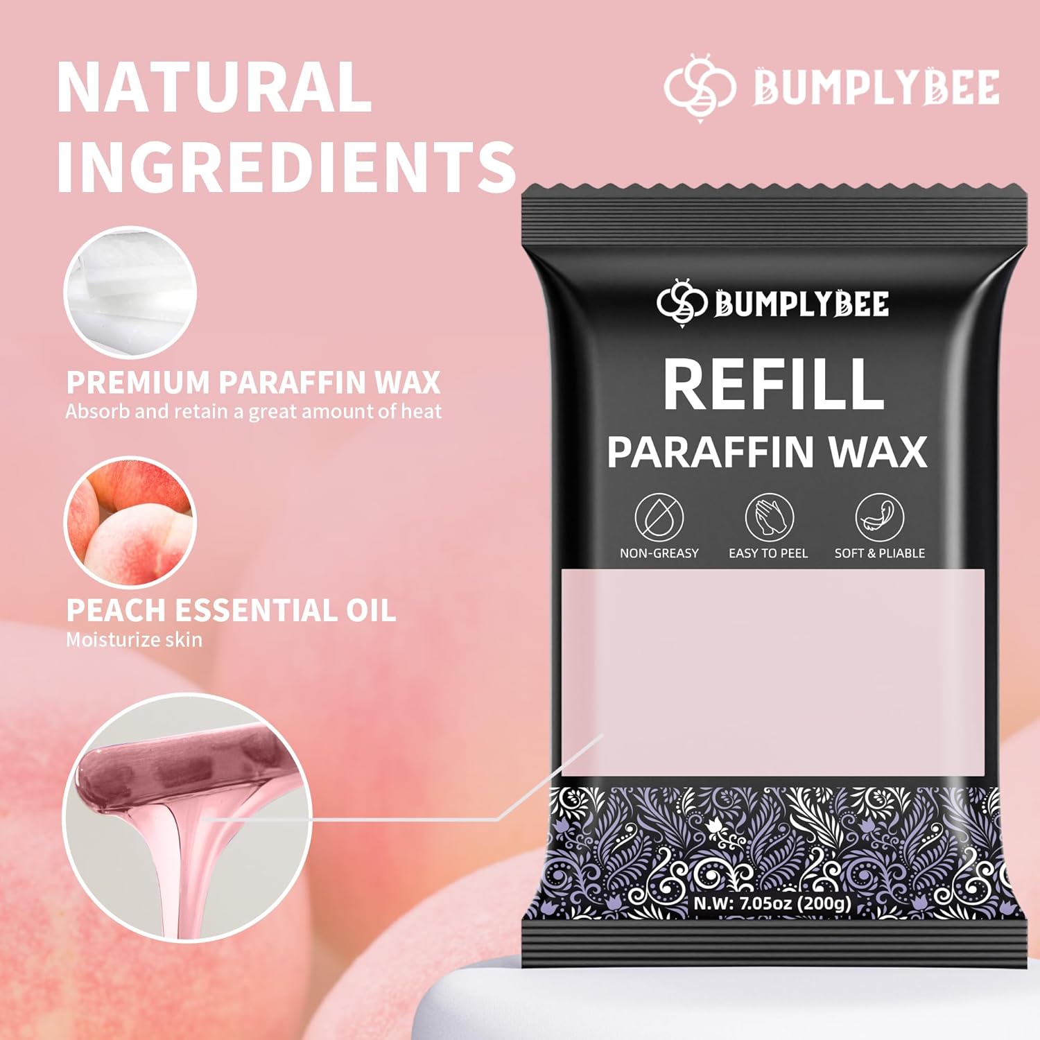 • Natural & Fast-Melting Formula - BUMPLYBEE Peach Paraffin Wax is crafted with natural paraffin and enriched with peach essential oil for a serene experience; Designed for paraffin wax bath enthusiasts, our wax melts quickly and evenly, saving time and ensuring a swift, rejuvenating skin-care session; Ideal for regular use on hands and feet, our paraffin wax for hands and feet enhances your home spa experience, making it smooth and effective