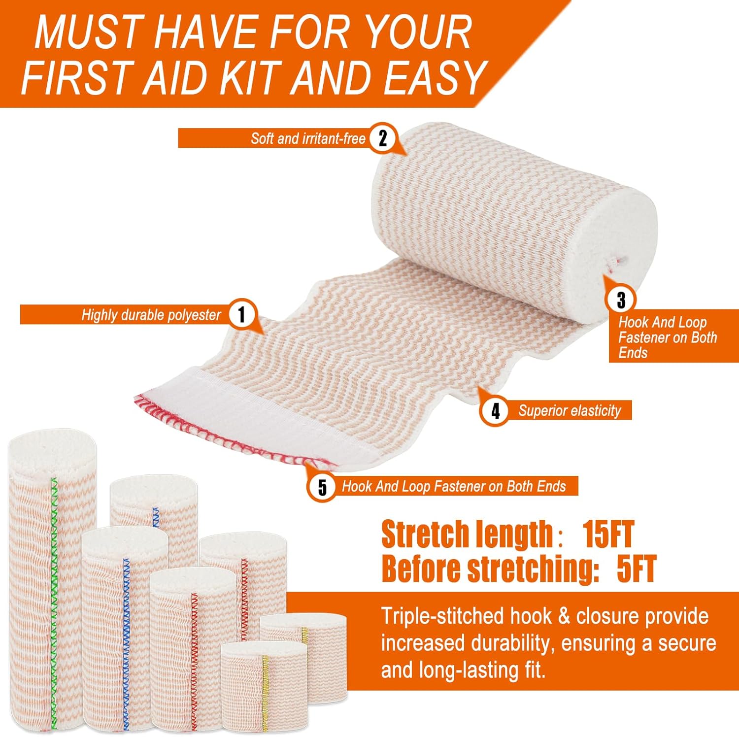 • Easy to Use and Remove: Designed for your convenience, our elastic bandage wrap is straightforward to apply and remove. It saves time and effort, making it a handy addition to your first aid kit.Reliable hook and loop closure for easier fixation compared to other bandages. They can be wrapped quickly with adjustable pressure and keep the bandage tight for hours.
