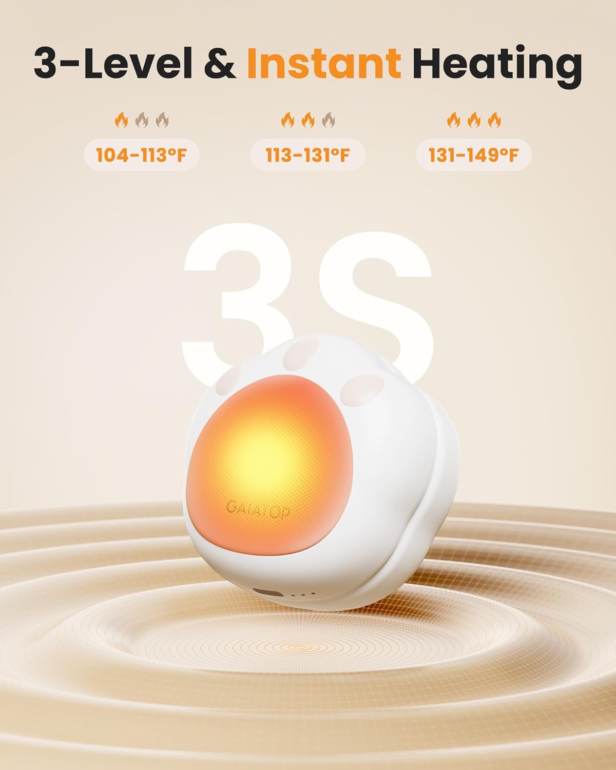 • Fast Heating and 3 Heat Settings: The hand warmers generate a large amount of heat and hot hands in seconds; Each with 3 heat settings, adjust the temperature to your comfort level, the temperature range from 104 °F to 149 °F In 1st to 3rd level