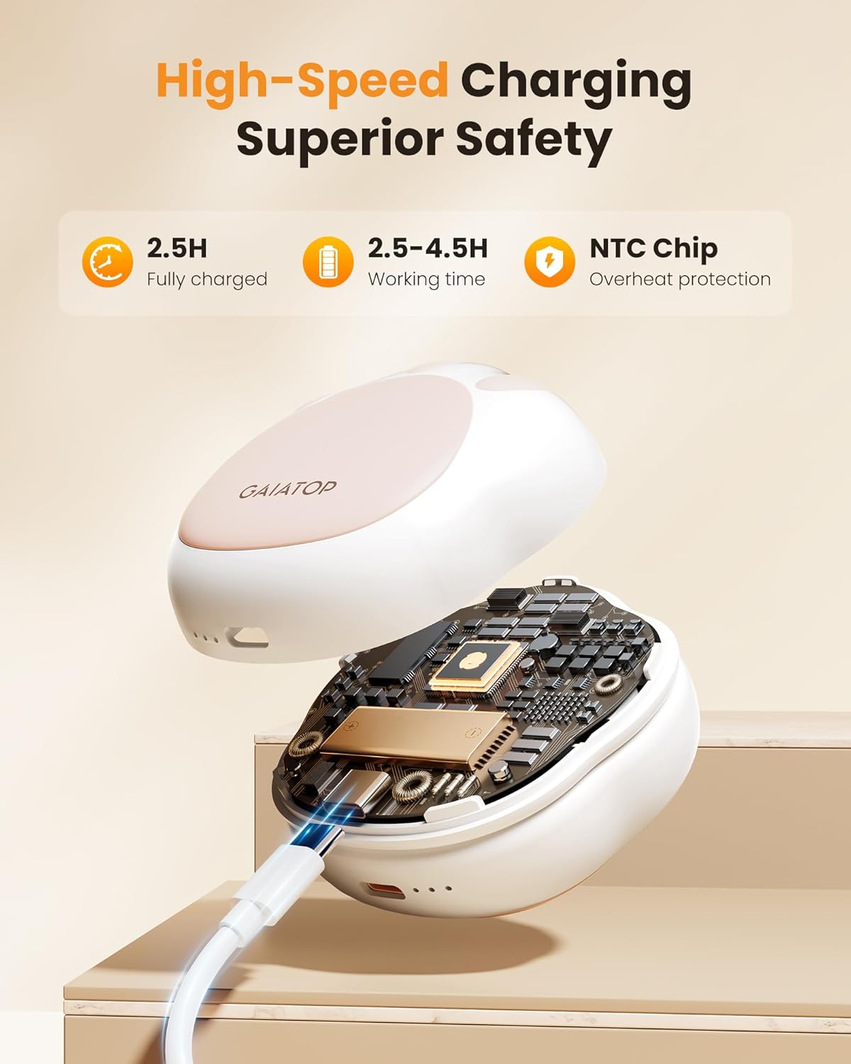 • Long Battery Life: The hand warmers rechargeable lasts for 2.5-4.5 h and fully charged within 2.5 h; Comes with 2 cables so they for charging at the same time; The LED lights are easy to read and tell you what heat level the portable hand warmer is on