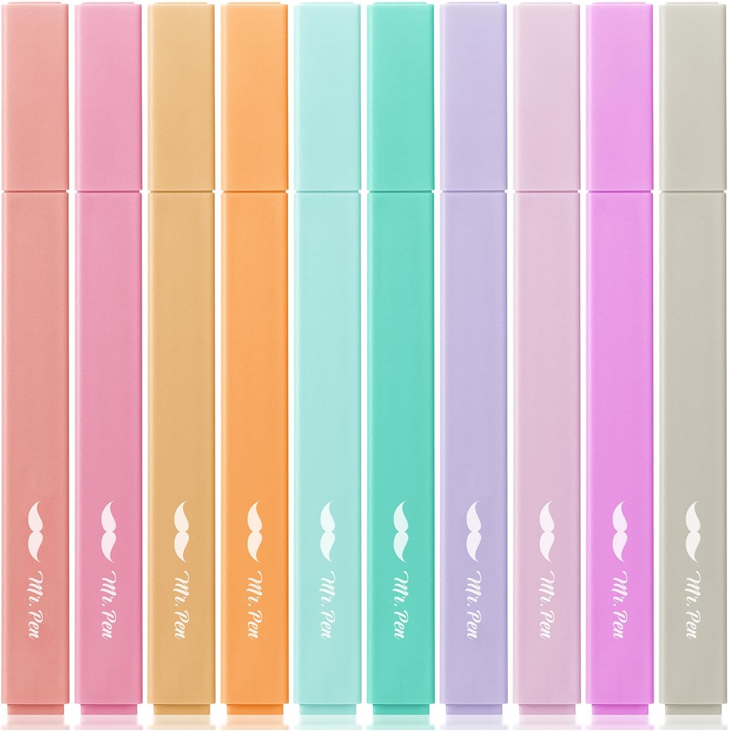 • Mr. Pen aesthetic highlighters feature a set of 10 elegant candy-colored pens, ideal for adding charm to your notes and projects.