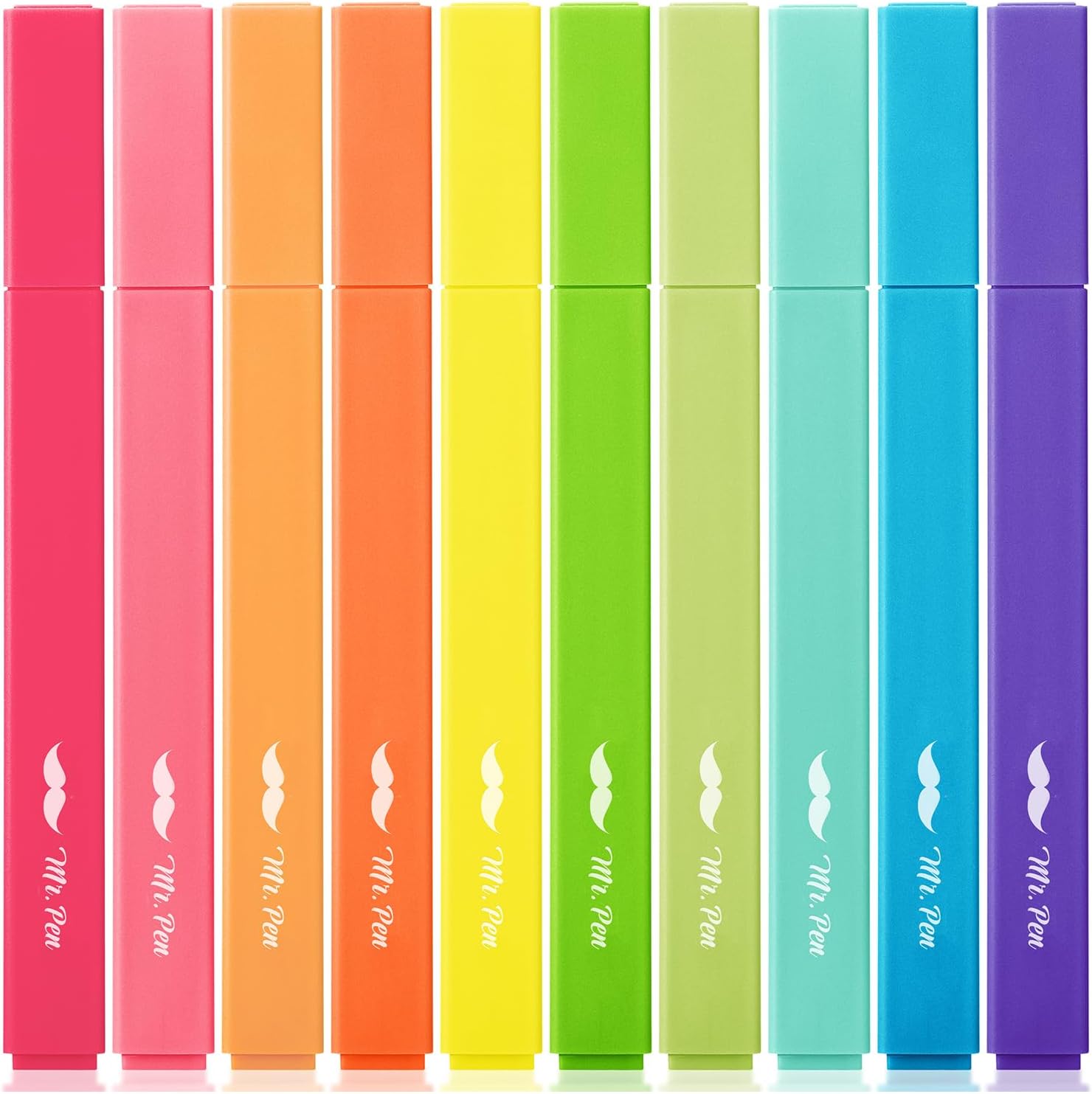 • Mr. Pen aesthetic highlighters come in a set of 10 beautifully vibrant colors, perfect for making your notes and projects stand out.