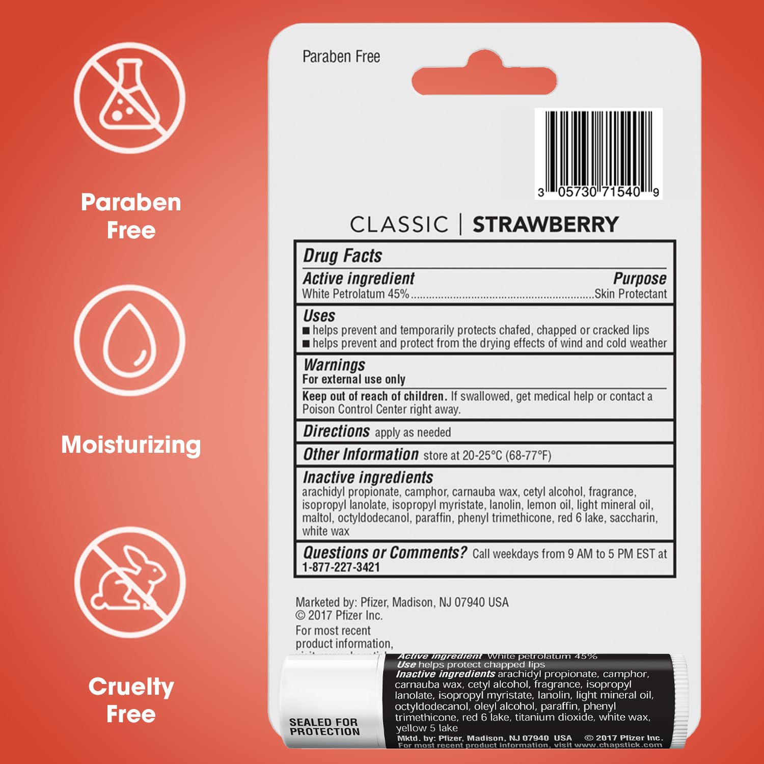 • HYDRATING LIP TREATMENT: For soft and protected lips, this bundle features 4 tubes of Strawberry Chapstick, a sheer pink-tinted lip balm, plus 1 tube of the Classic Original ChapStick.