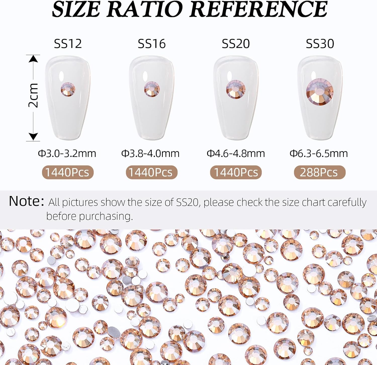 Gold Shadow Flatback Rhinestones, Glass Rhinestones for Nail Art and Craft, Glue Fix, Loose Crystal Gemstones(Gold Shadow, SS12, 1440pcs, 2.9-3.0mm)