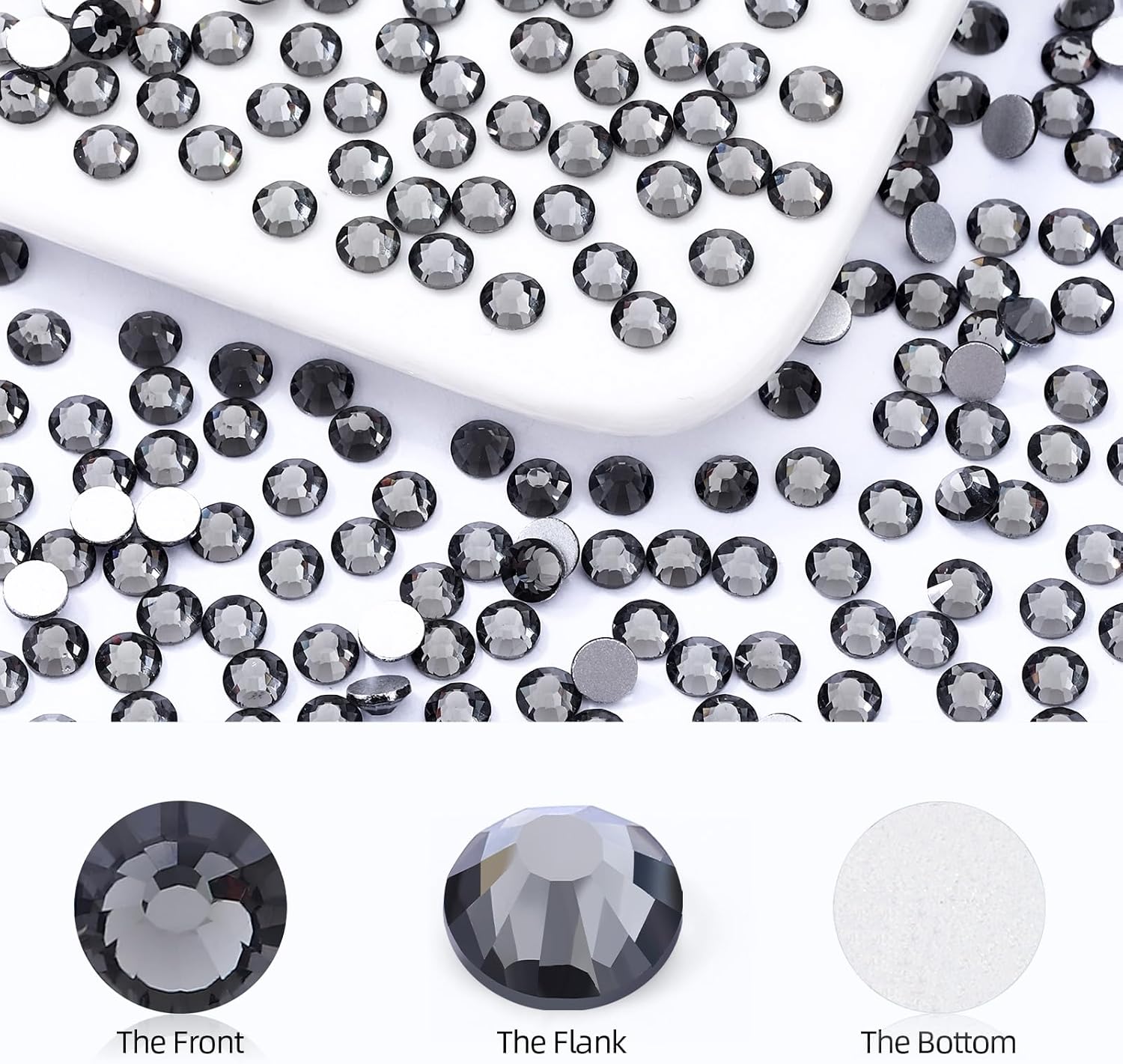 Gray Flatback Rhinestones, Glass Rhinestones for Nail Art and Craft, Glue Fix, Loose Crystal Gemstones(Gray, SS16, 1440pcs, 3.8-4.0mm)