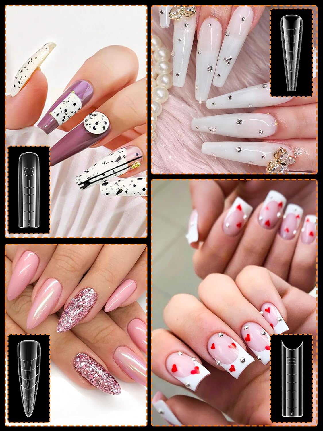 • 【Easy to Use】They are artificial nails forms, used as the nail mold. Poly nail gel dual forms are designed with the good length and clear scales on the nail surface, so that you can easy to design and control the length or shape you want. No glue needed, just brush the acrylic/poly gel into the forms and then place on the nail plate, hold on for a few seconds and cure it. Easy to shape in different lengths, and pull away easily from the dried acrylic nails, leaving a very shiny nail