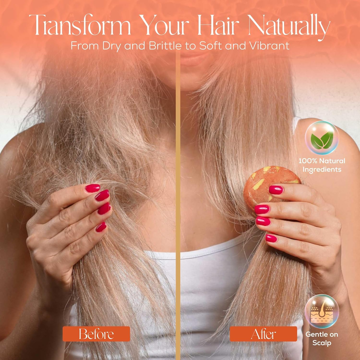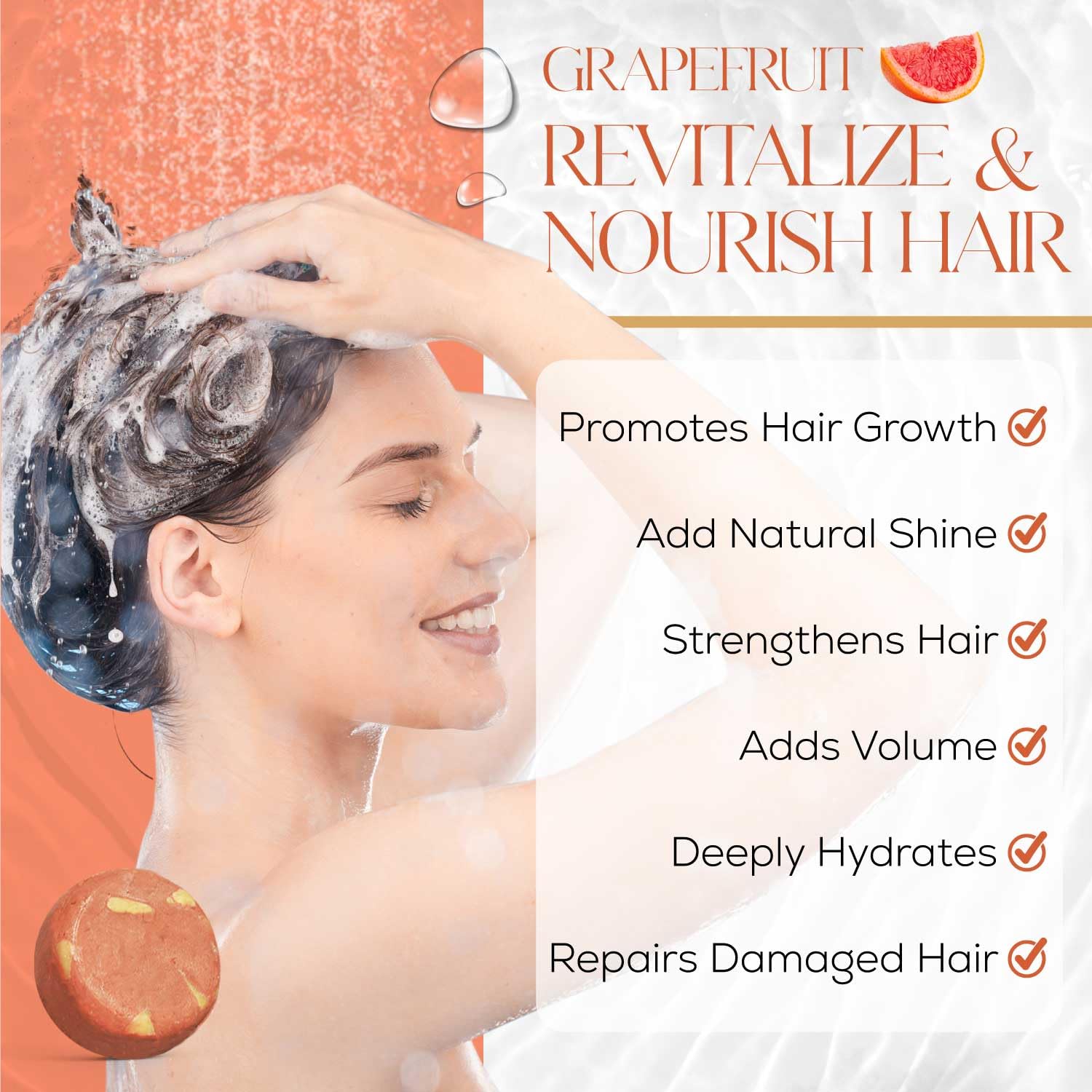 • Aromatherapy For Your Hair: Immerse yourself in a spa-like experience at home with our solid shampoo bar, which is infused with all-natural essential oils for a discreet and refreshing aroma. Discover the calming scents of rosemary, grapefruit, and eucalyptus, and find a hair growth shampoo bar that leaves your hair feeling fresh, and delicately scented.