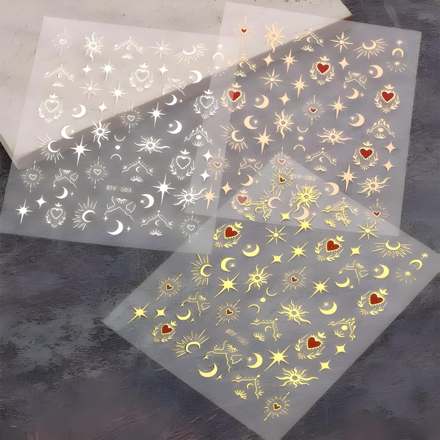 • Package:12 sheets gold sun nail art stickers,more than design patterns.For women kid girls,exquisite nail design DIY fashion nail decoration.