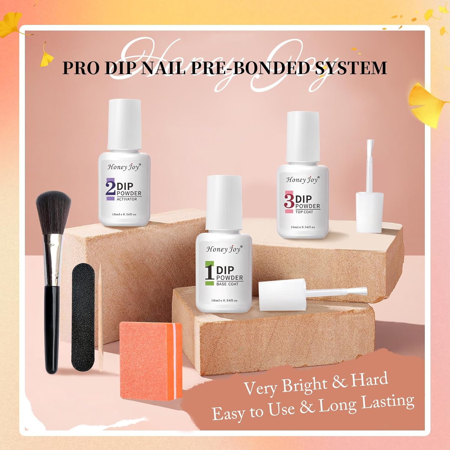 • 🎁Dip Powder Nail Kit Includes: Embrace the Classic Elegance of Halloween with our Honey Joy Midnight Black, Harvest Orange Dip Powder Liquid Set, a perfect dip powder nail kit starter. This kit contains 4 x radiant dipping powder shades (10g each) for that soft blush to playful bubblegum pop, along with a dip nails liquid set including base & top coat, and activator (10ml each). Additionally, you'll find 4 professional tools (including a nail brush, cleaner stick, and nail file) to achieve that coveted high-quality, salon-effect at home with our comprehensive dipped nails powder starter kit.