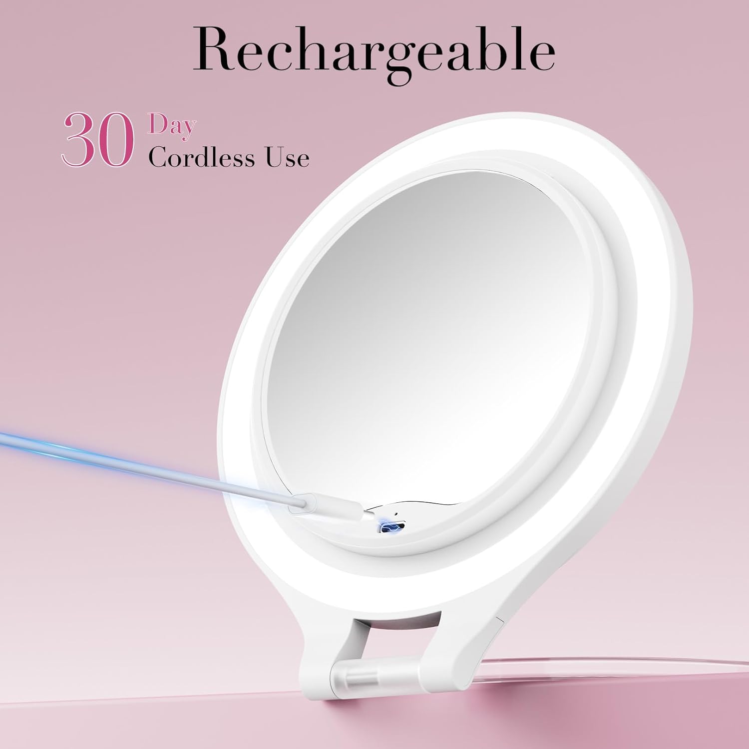 FASCINATE Magnifying Mirror with Light 10X/1X, Double Sided Travel Mirror with Light, Rechargeable Makeup Mirror with 3 Color Setting Adjustable Stand Lighted Mirror Vanity Portable Desk Cosmetic