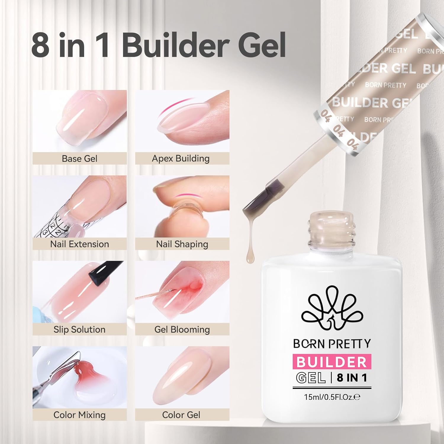 • PACKAGE CONTENTS: BORN PRETTY 15ml Natural Nude builder gel is perfect for nail extensions,apex building, nail enhancement, 3D nail art, DIY glitter gel, infill gaps, nail tips overlay, base gel, cover unevenness, rhinestone gel, can do nail extension, nail repair or reinforcement and nail design at the same time. Suitable for your daily outfit and any occasion.