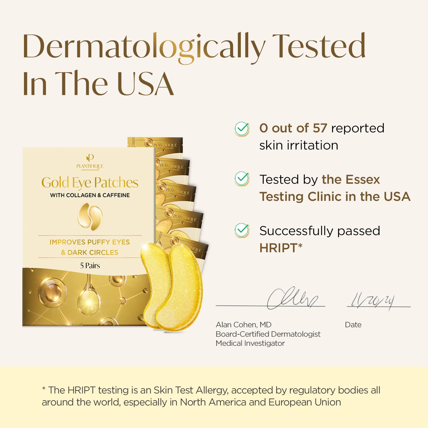 PLANTIFIQUE Gold Eye Patches for Puffy Eyes and Dark Circles 5 Pairs Under Eye Masks for Dark Circles and Puffiness Eye Gels with Collagen & Caffeine Eye Patches Gold Eye Mask Skincare