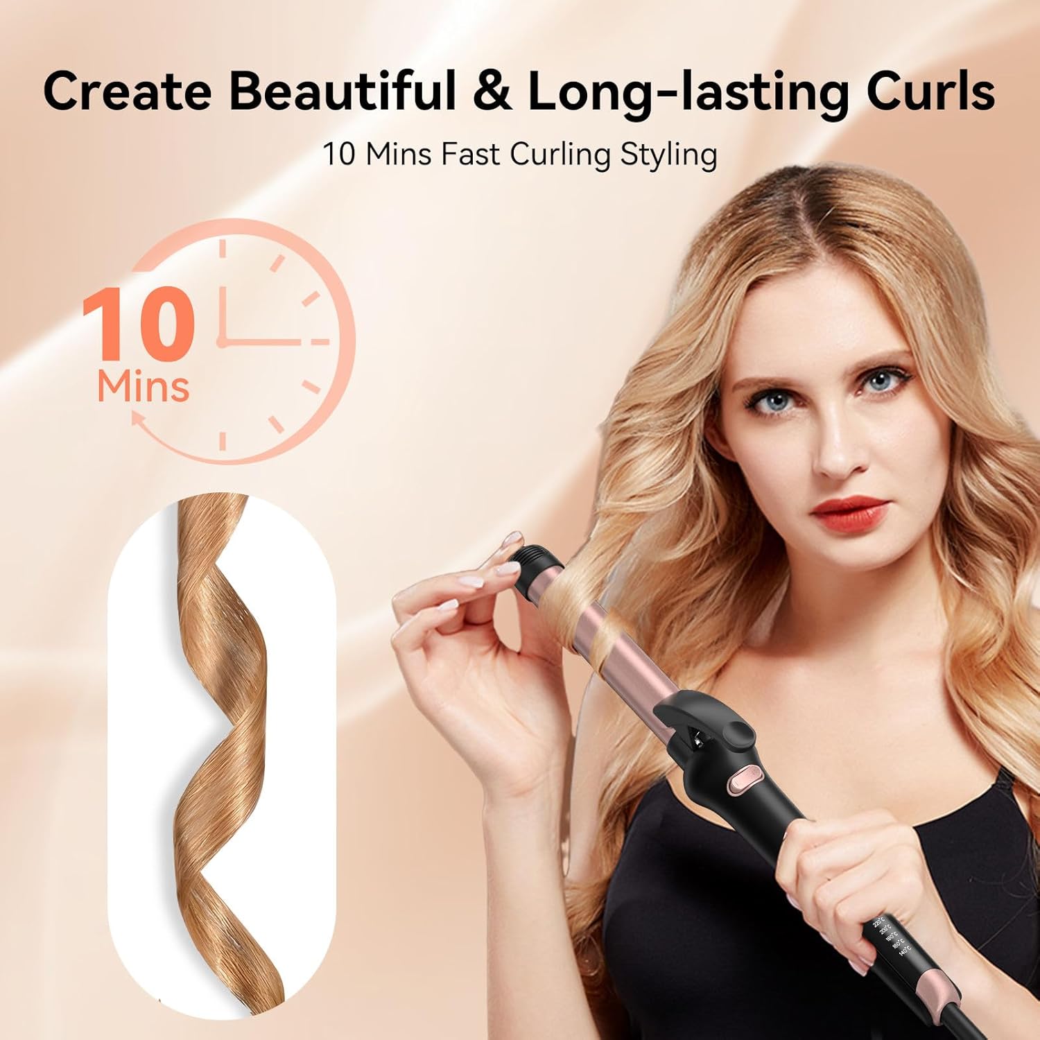 • Adjustable Heat Settings -- The 360° rotating curling wand features 30-second rapid heating technology and offers 5 temperature settings ranging from 284°F (140°C) to 420°F (220°C), allowing you to select the optimal temperature for your hair type and style—whether fine or thick
