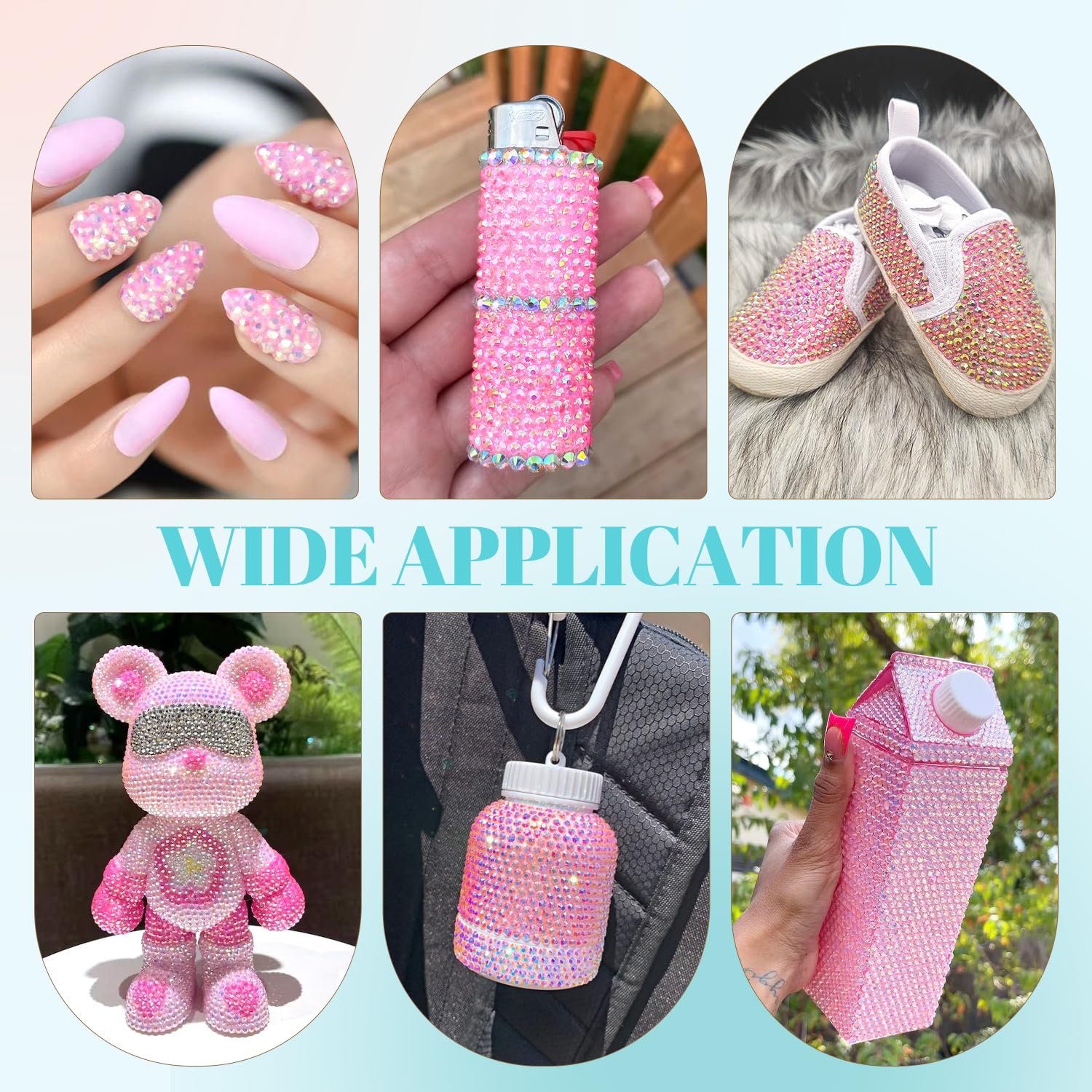 • 💎WIDE APPLICATION -- These sparkling iridescent resin crystals are perfect for creating dazzling looks. Use them for bedazzling DIY crafts like shoes, tumblers, mugs, bottles, phone cases, popsockets, scrapbooks, photo frames, diamond paintings, greeting cards, bags, glasses, guitars, keychains, hats, masks, hair clips, bracelets, wristbands, clothing, wedding dresses, and more. Apply it to what you want to bling!