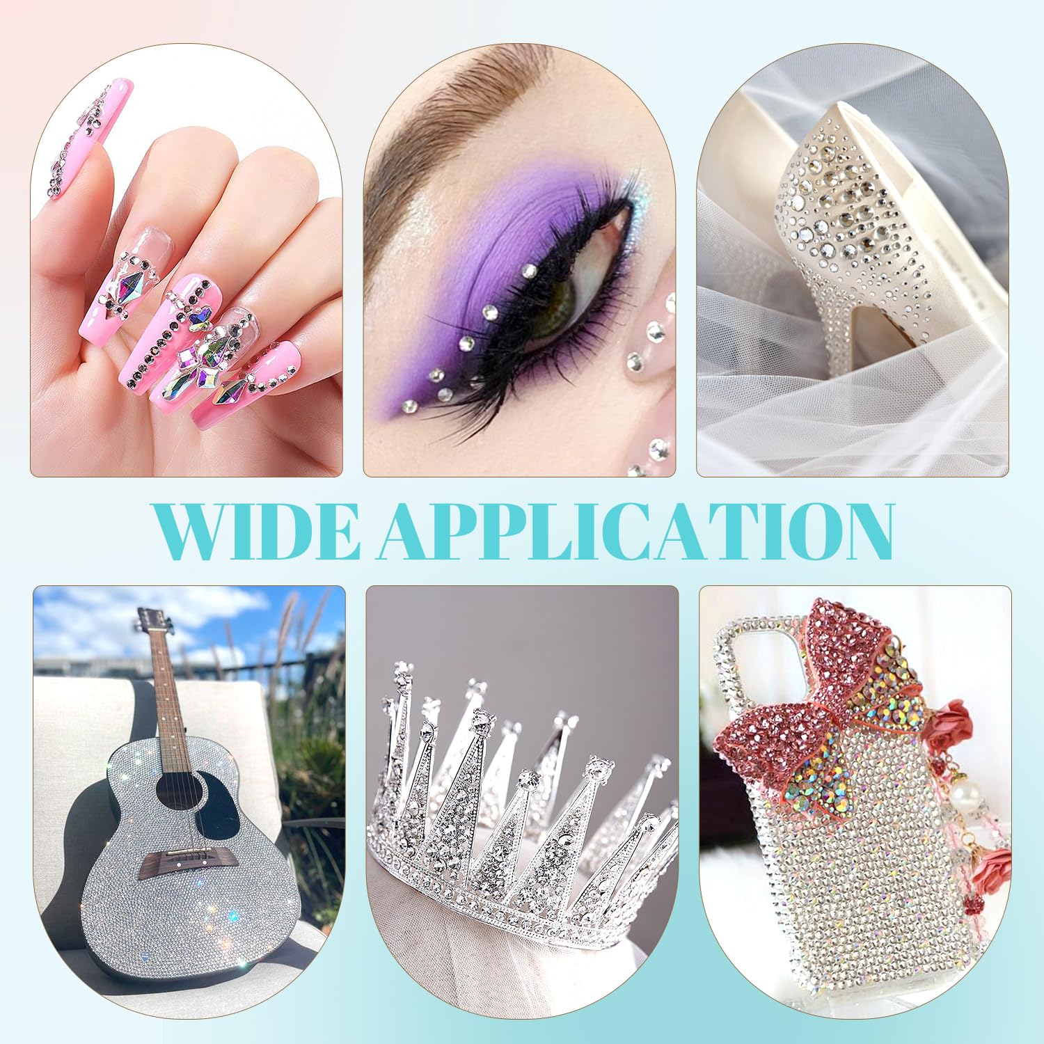 • 💎WIDE APPLICATION -- These sparkling iridescent resin crystals are perfect for creating dazzling looks. Use them for bedazzling DIY crafts like shoes, tumblers, mugs, bottles, phone cases, popsockets, scrapbooks, photo frames, diamond paintings, greeting cards, bags, glasses, guitars, keychains, hats, masks, hair clips, bracelets, wristbands, clothing, wedding dresses, and more. Apply it to what you want to bling!