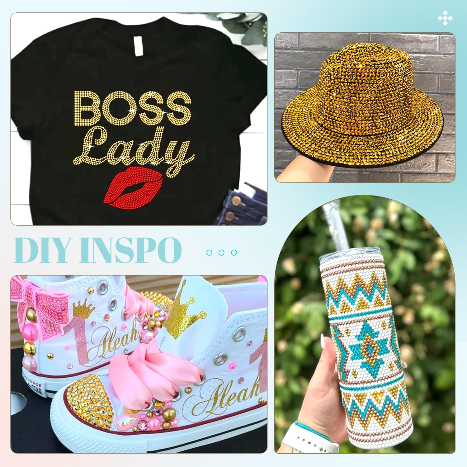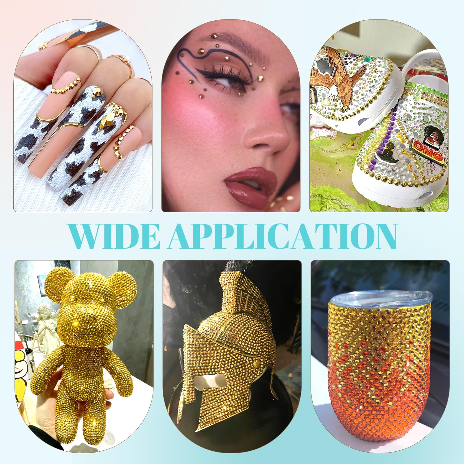 • 💎WIDE APPLICATION -- These sparkling iridescent resin crystals are perfect for creating dazzling looks. Use them for bedazzling DIY crafts like shoes, tumblers, mugs, bottles, phone cases, popsockets, scrapbooks, photo frames, diamond paintings, greeting cards, bags, glasses, guitars, keychains, hats, masks, hair clips, bracelets, wristbands, clothing, wedding dresses, and more. Apply it to what you want to bling!