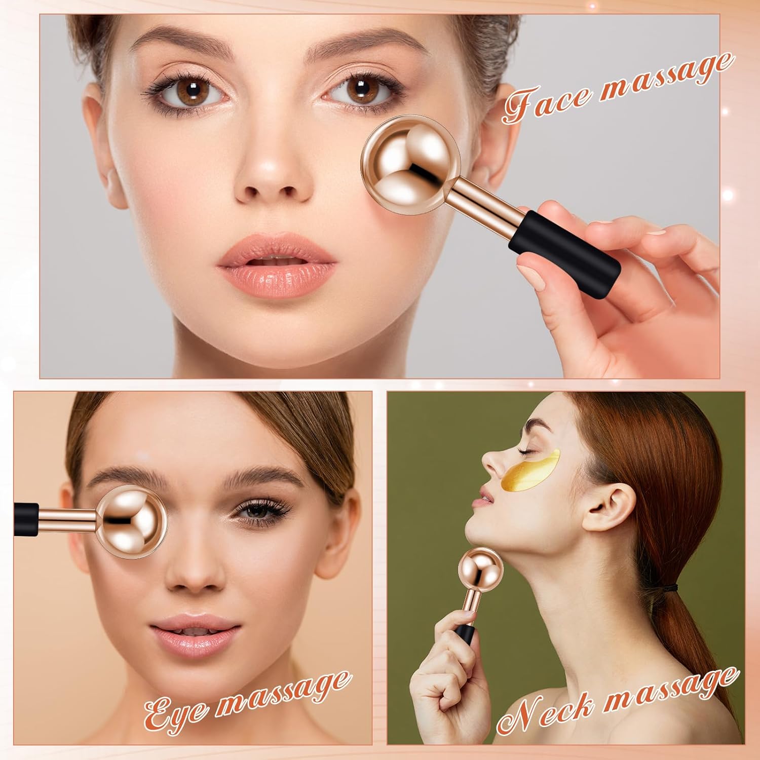 Baderke 2 Pcs Ice Globes for Face Stainless Steel Cooling Globes Unbreakable Cooling Roller Women Ice Balls Cryo Sticks Face Skin Care for Dark Circles, Puffiness(Rose Gold (black Handle))