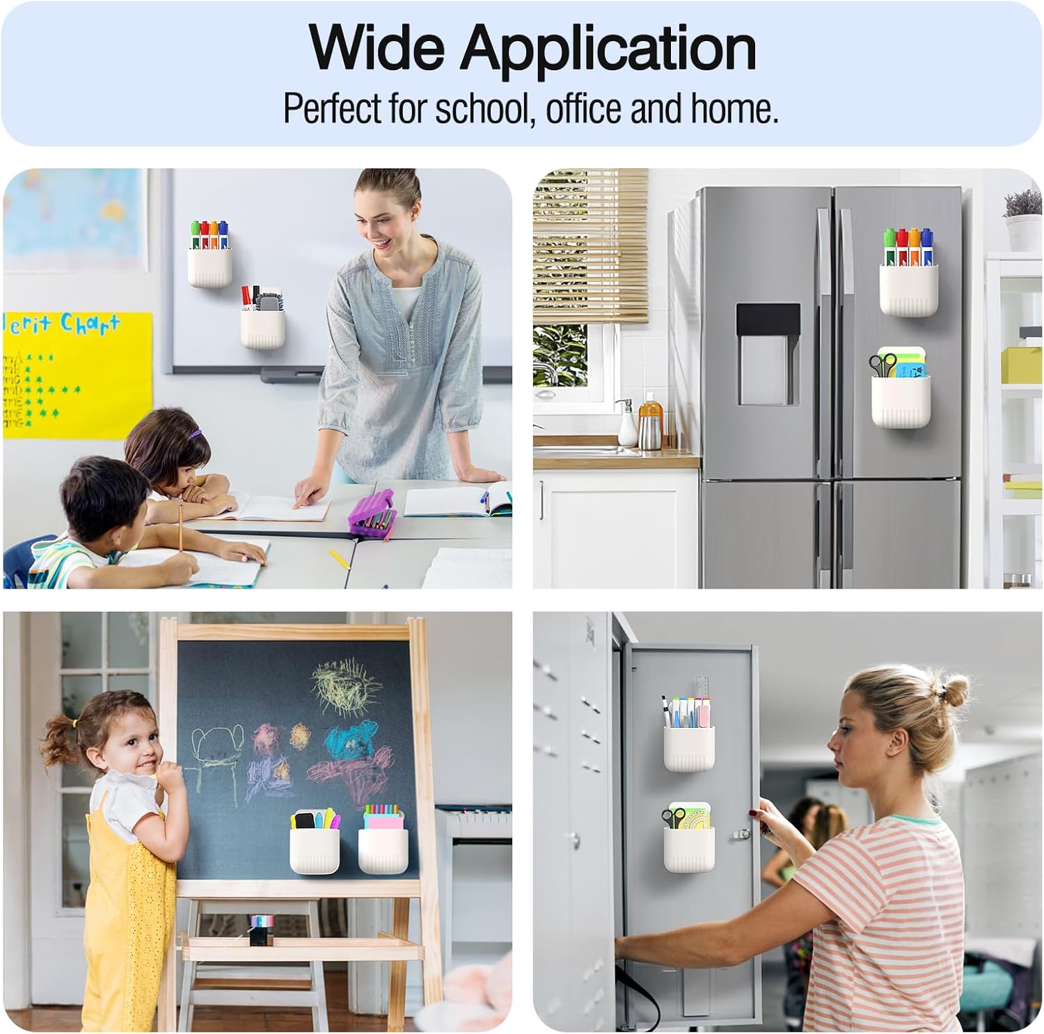 • 【Magnetic Storage Holder】Measuring 6.3x3.7x3.7in/ 16x9.5x9.5cm, the dry erase marker holder has a appropriate size and can organize various office or school supplies, such as markers, pencils, pens, whiteboard erasers, sticky notes, etc. Keep office essentials organized and say goodbye to messy storage!