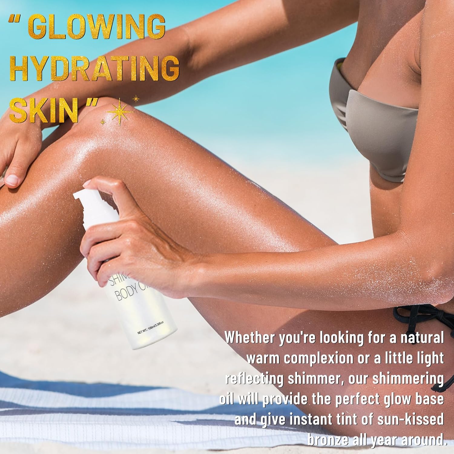 • 【UCANBE 100ml Shimmer Body Oil Glowing Luminizer】This shimmering body glow oil made to top off your natural-looking healthy glow and brightens your complexion, the flecks of shimmer catch the light and make your skin shine, get you instant bronze skin look with some glitter, giving skin an attractive shimmer in the sun. Definitely a must-have for girls and women to keep their skin hydrating and glowing all year 'round!