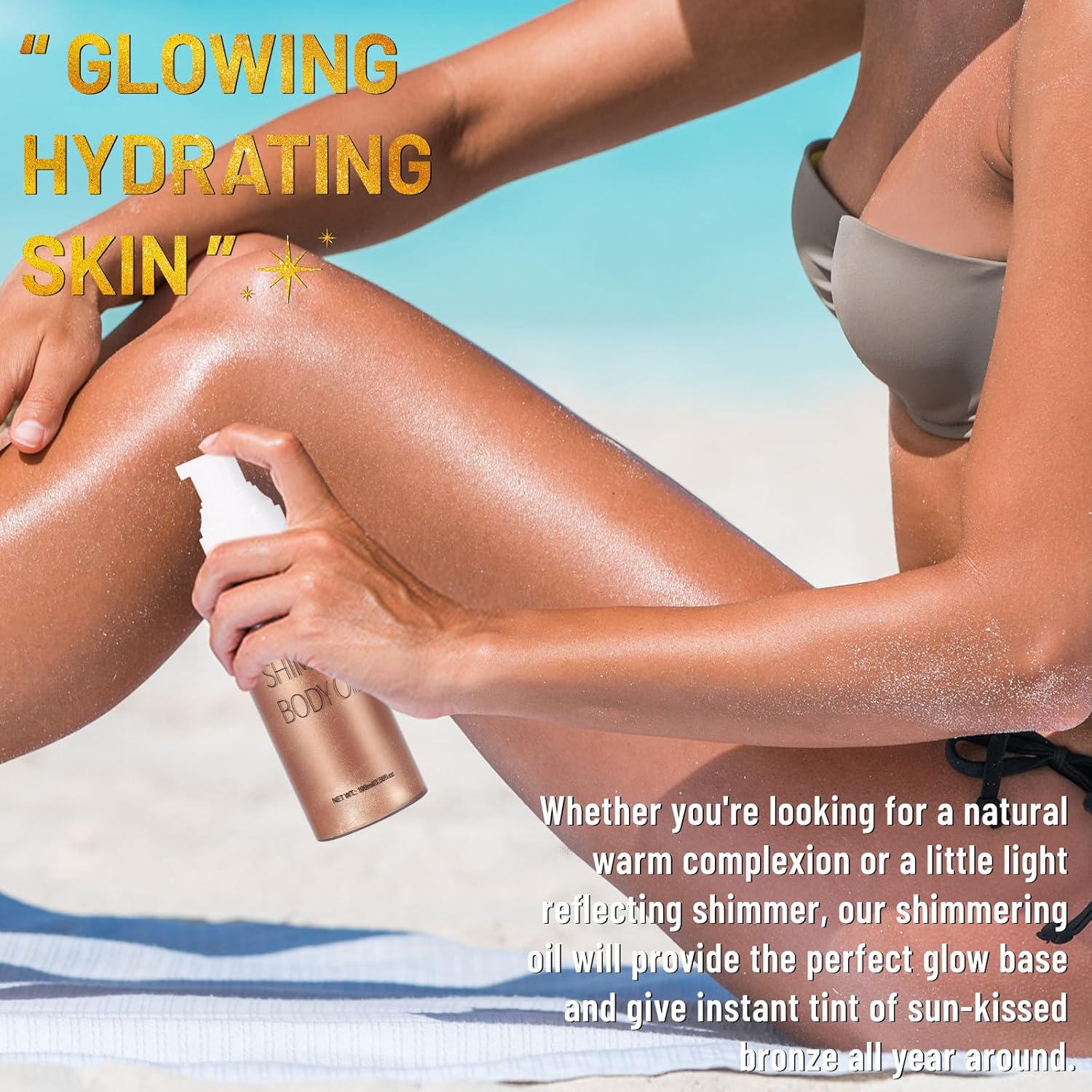 • 【UCANBE 100ml Shimmer Body Oil Glowing Luminizer】This shimmering body glow oil made to top off your natural-looking healthy glow and brightens your complexion, the flecks of shimmer catch the light and make your skin shine, get you instant bronze skin look with some glitter, giving skin an attractive shimmer in the sun. Definitely a must-have for girls and women to keep their skin hydrating and glowing all year 'round!