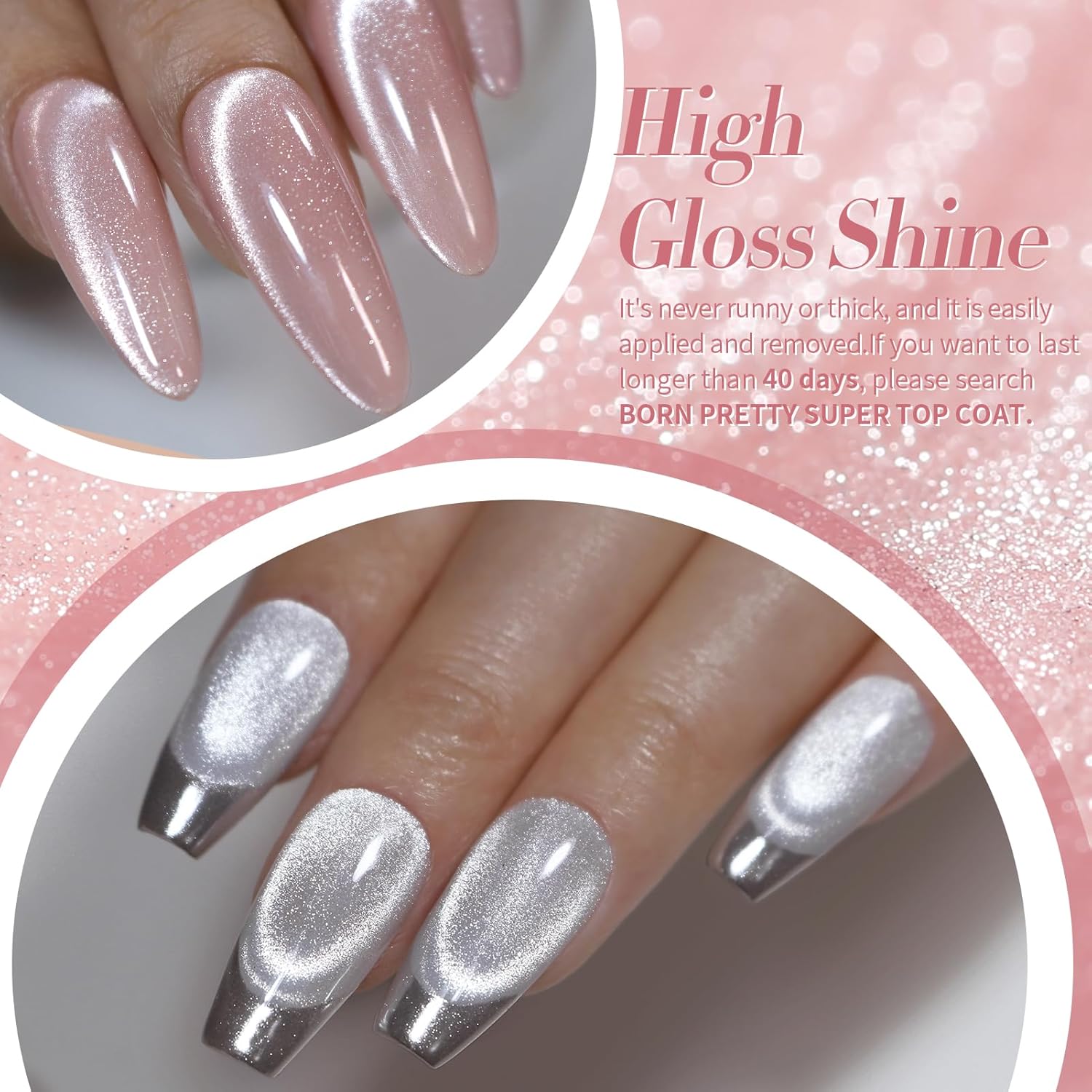 Born Pretty Cat Magnetic Eye Gel Nail Polish, Pastel Milky Jelly Cat Magnetic Gel Pastel Blue Green Purple Pink Nude Silver Nail Art Gel Manicure Salon DIY Gifts 7ML 6PCS