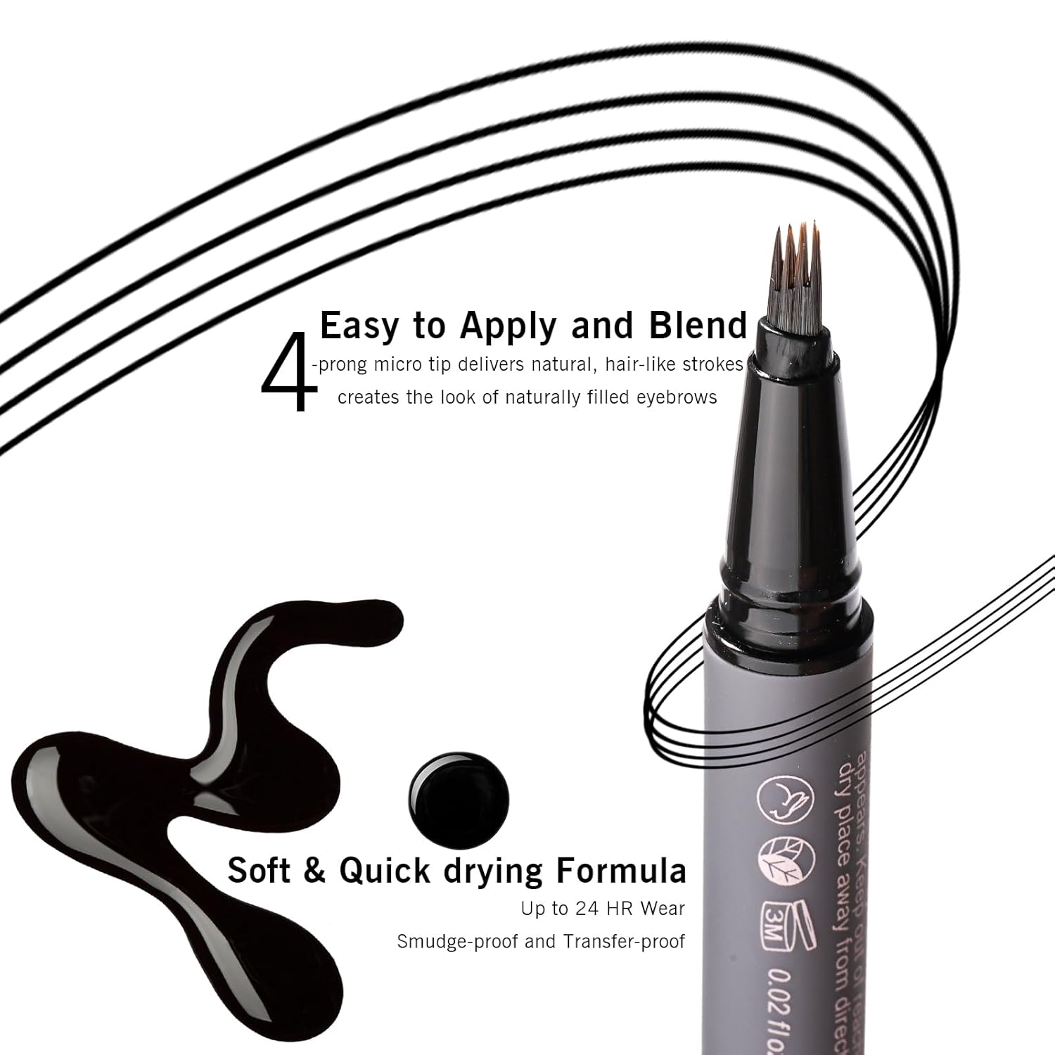 • 【Quick-Drying, Smudge-Proof & Long-Lasting】Our 4-prong eyebrow pen dries quickly to reduce smudging and allows easy layering. The long-lasting formula keeps your brows fresh and defined 24H.