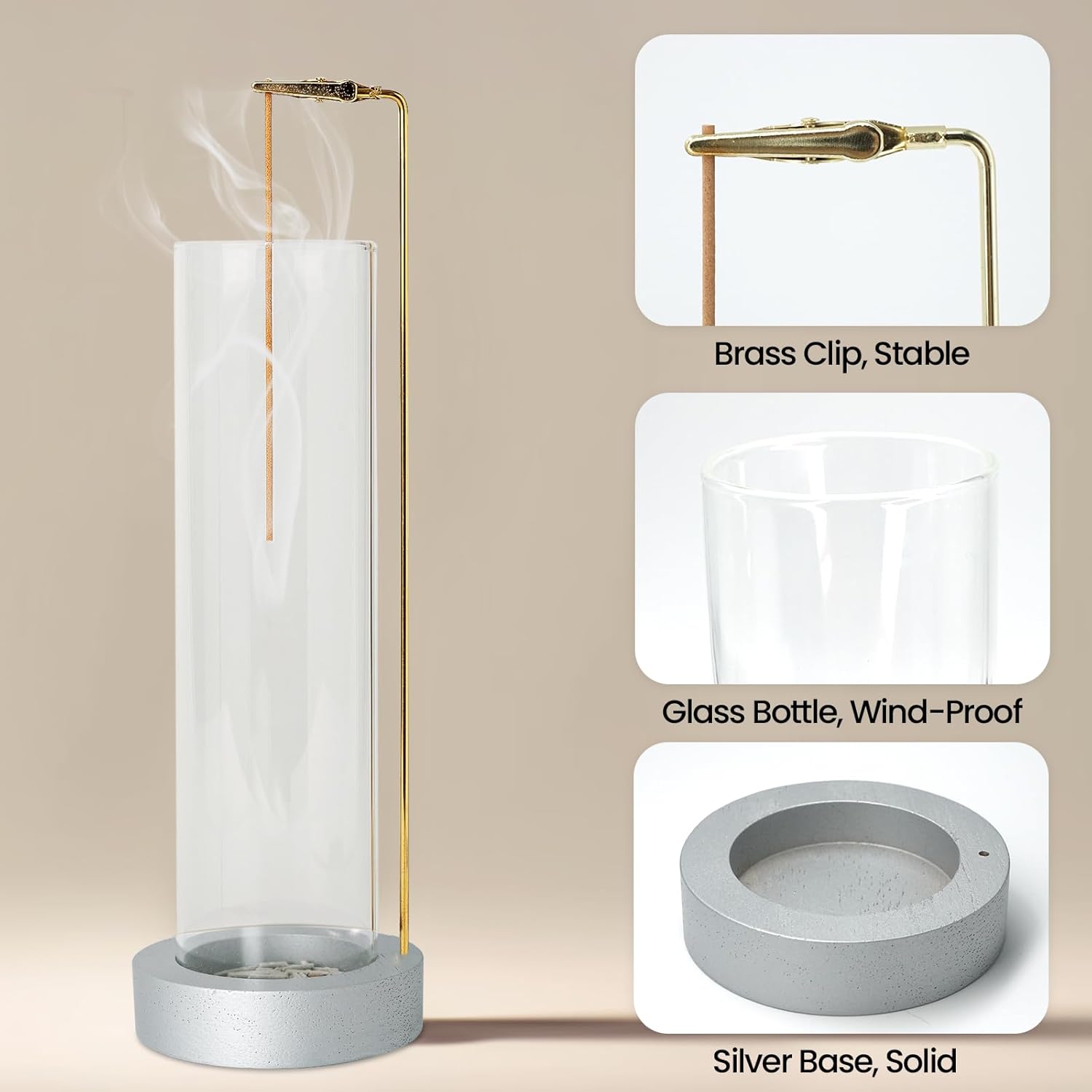 • Anti-Ash Incense Holder: Our design ensures that the incense hangs upside down in the center of the glass bottle. This not only prevents messy ash from scattering on your table but also results in less smoke, creating a more pleasant aromatic experience.