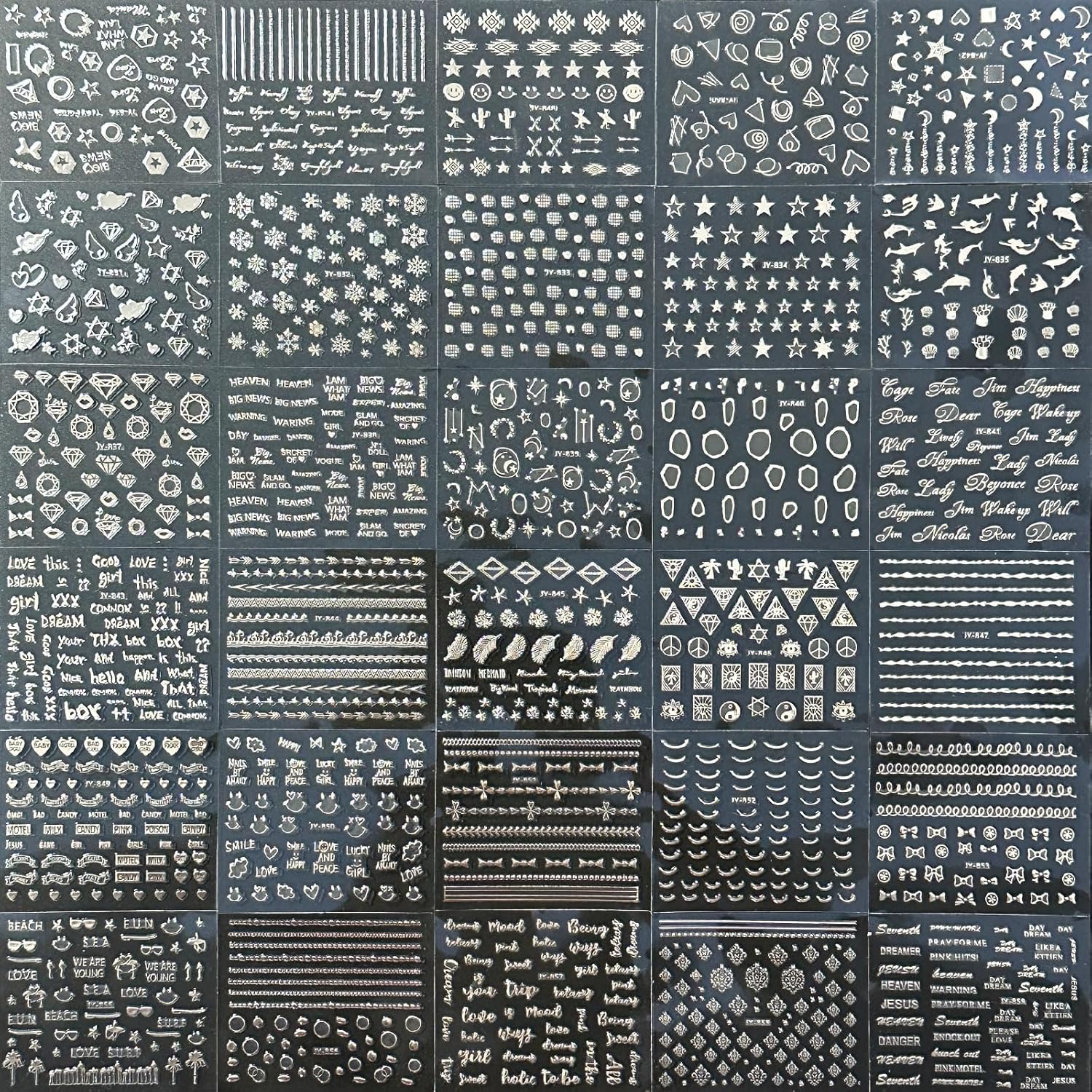 • Silver Nail Stickers: You will get 30 styles silver nail decals in one set of different line star and heart shapes nail stickers,satisfy all your love for beautiful nails, a variety of elements for you to choose from to DIY your own nail art design.