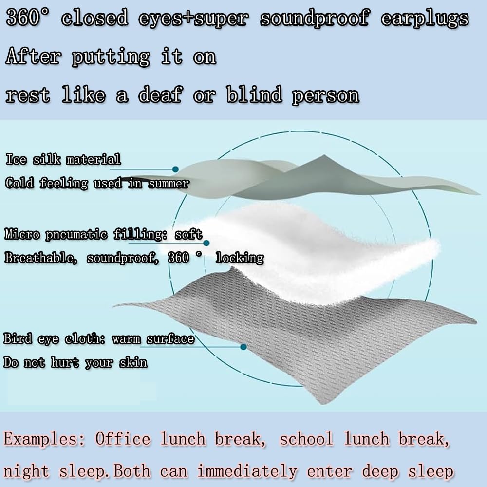 • Eye Mask+Earplugs: 360 ° blackout sleep mask, filled with micro air cotton material, the mask is very gentle and covers the eyes all night long, without squeezing the nose, ears, and skin, and will not harm the skin. At the same time, wearing silicone earplugs, soft material, will not squeeze the ears, with 4 levels of sound insulation effect, will make you sleep like a deaf or blind person, quickly entering deep sleep