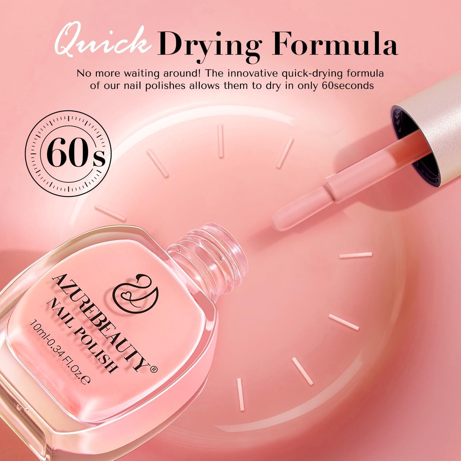 • 【Natural Effect】 AZUREBEAUTY transparent nail polish has a lightweight texture that allows nails to breathe freely, making it suitable for nail lovers of all skin types. At the same time, this nail polish makes your hands look fashionable and flawless. (❤Tips: Everyone's love for nail polish varies, 2 - 3 coats at a time is appropriate.)