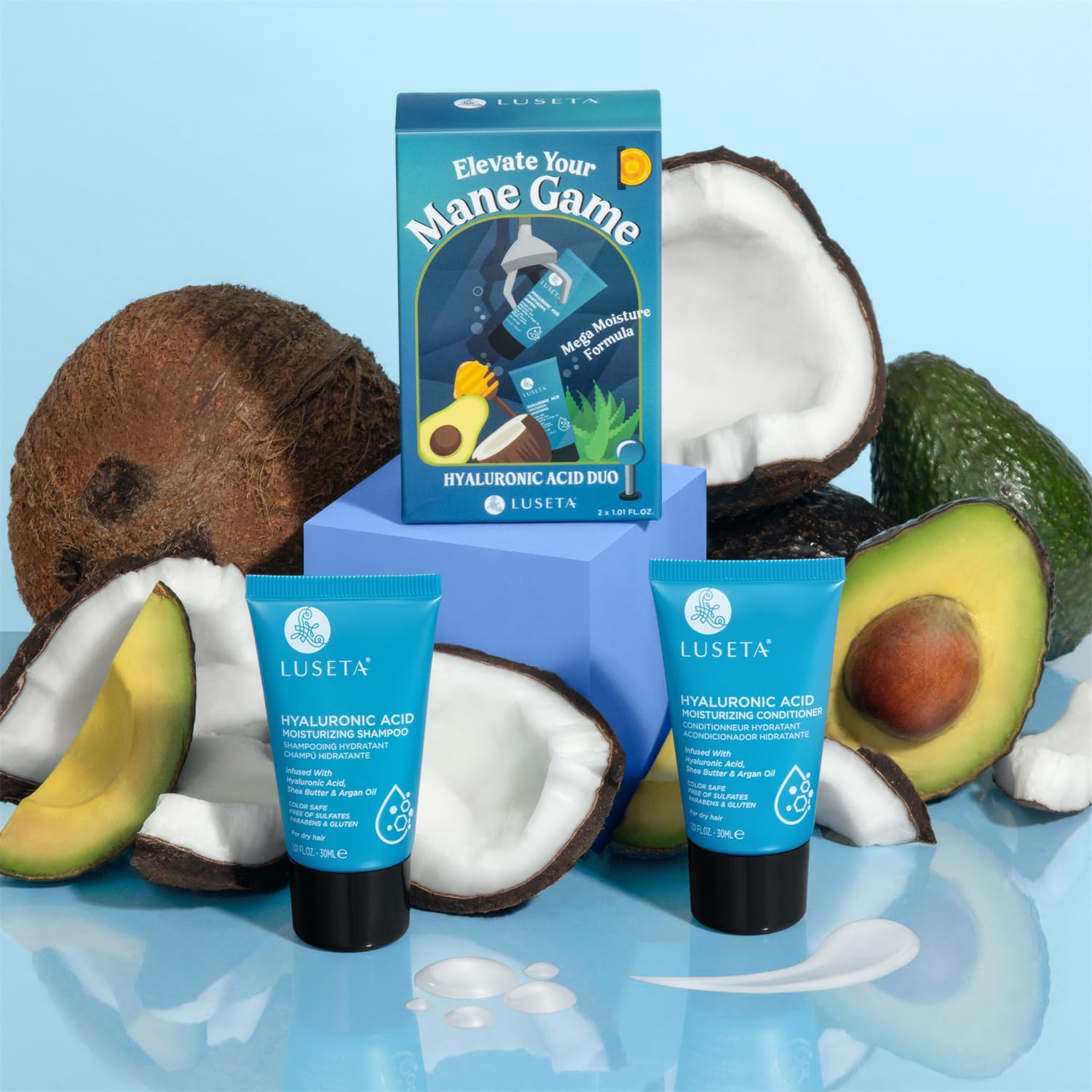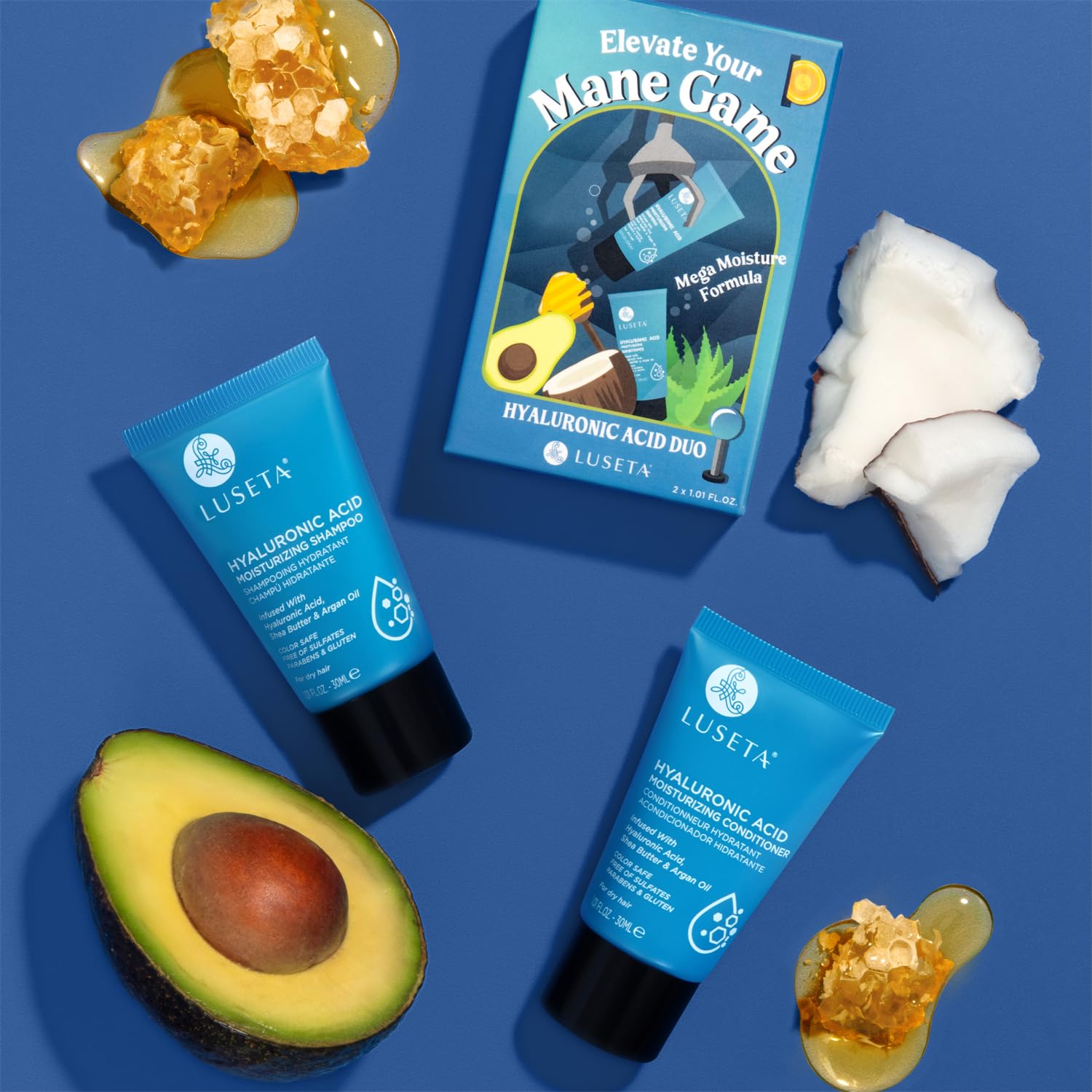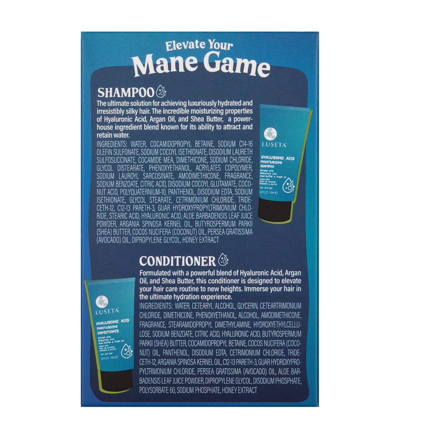 Luseta Hyaluronic Acid Moisturizing Shampoo & Conditioner Set for Dry and Damaged Hair, Sulfate Free Shampoo and Conditioner for Women Infused with Argan Oil and Shea Butter Paraben-Free 2 x 1.01oz