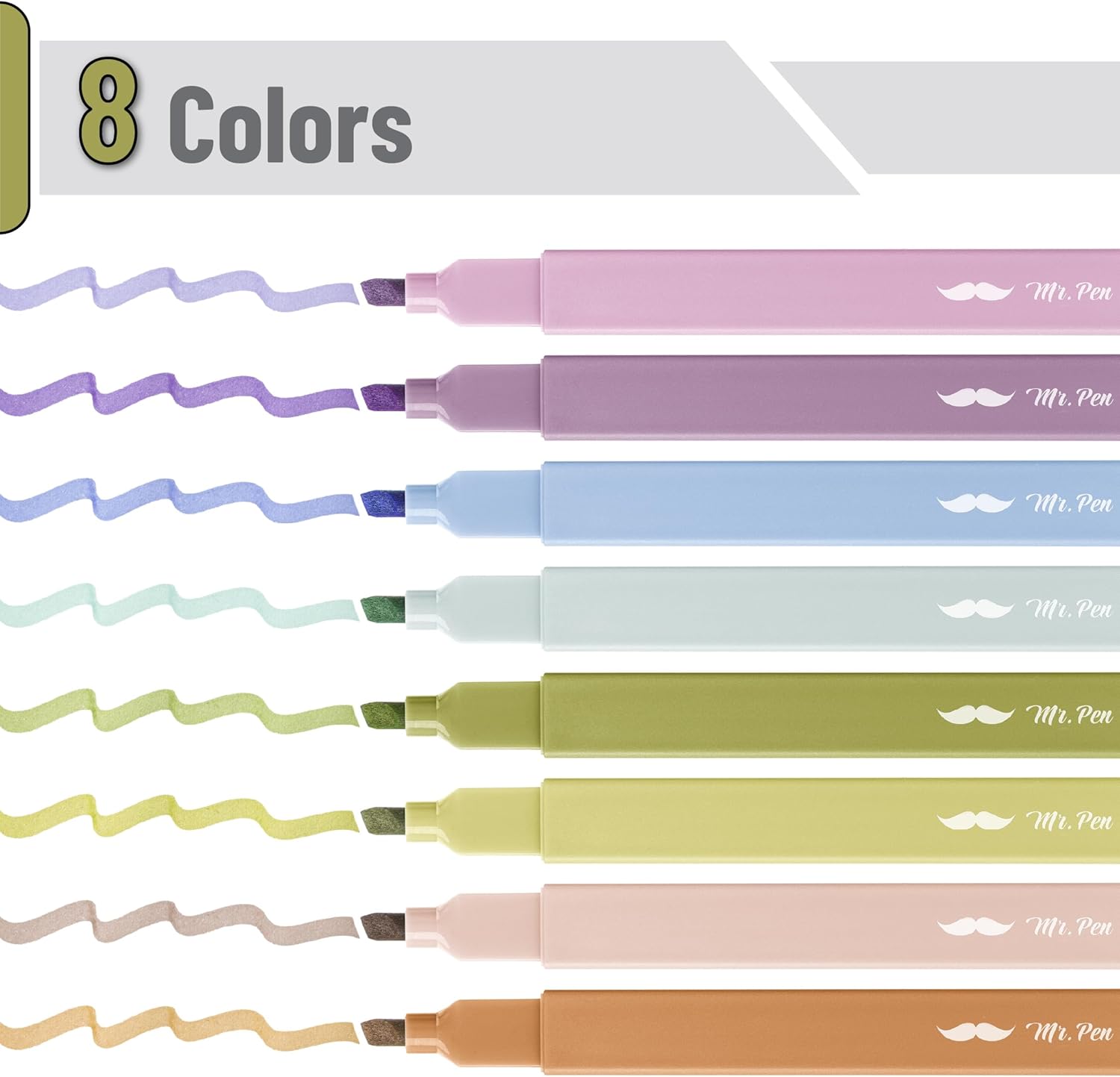 • Mr. Pen aesthetic highlighters come in a set of 8 serene, earth-inspired colors that bring natural elegance to your notes and projects.