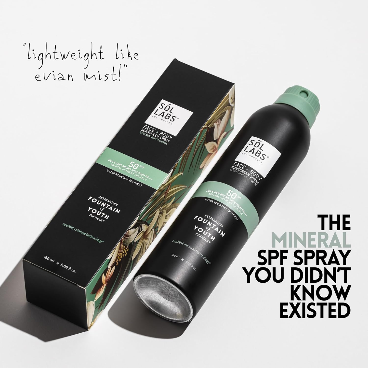 • [Clean, Conscious, and Non-Aerosol Formula for Healthier Skin] - Free from parabens, synthetic fragrances, alcohol, and other harsh irritants, SOL LABS' sunscreen mist is vegan, cruelty-free, gluten-free, and non-GMO. The non-aerosol spray pump delivers a fine, even mist without pressurized gas, making it safer for your lungs, your skin, and the environment. Enjoy smart, sustainable skincare in every spray.