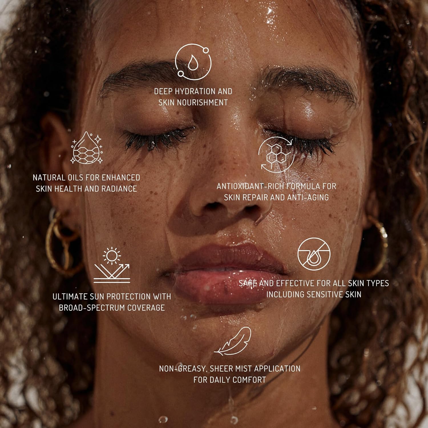 • [Deep Hydration Meets Sun Protection with Botanical Skin Support] - More than just sun protection, this mist is infused with nourishing ingredients like Aloe Vera, Calendula Flower Extract, and Bisabolol to soothe inflammation, reduce redness, and replenish moisture lost under sun exposure. The result is a spray sunscreen SPF 50 that doubles as a hydrating facial mist, helping skin feel calm, cool, and comforted all day long.