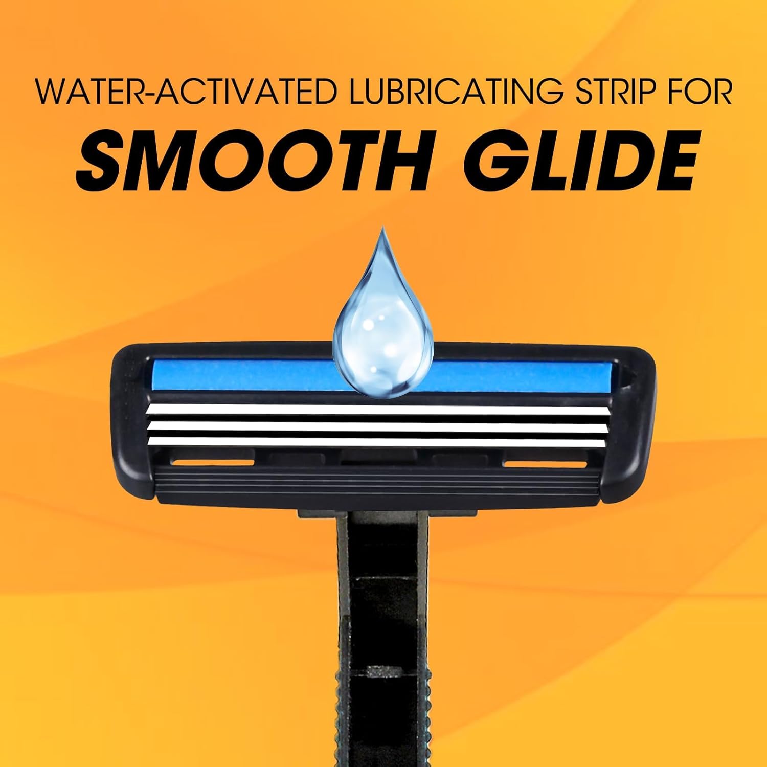 • 【Efficient 3 Blade Design with Protective Covers】These black disposable razors boast a 3 blade design, water-activated lubricating strip for smooth glide, optimizing time and efficiency for a safer, more comfortable shave. The 3 blades, complemented by the provided protective covers, facilitate a closer and smoother shave.