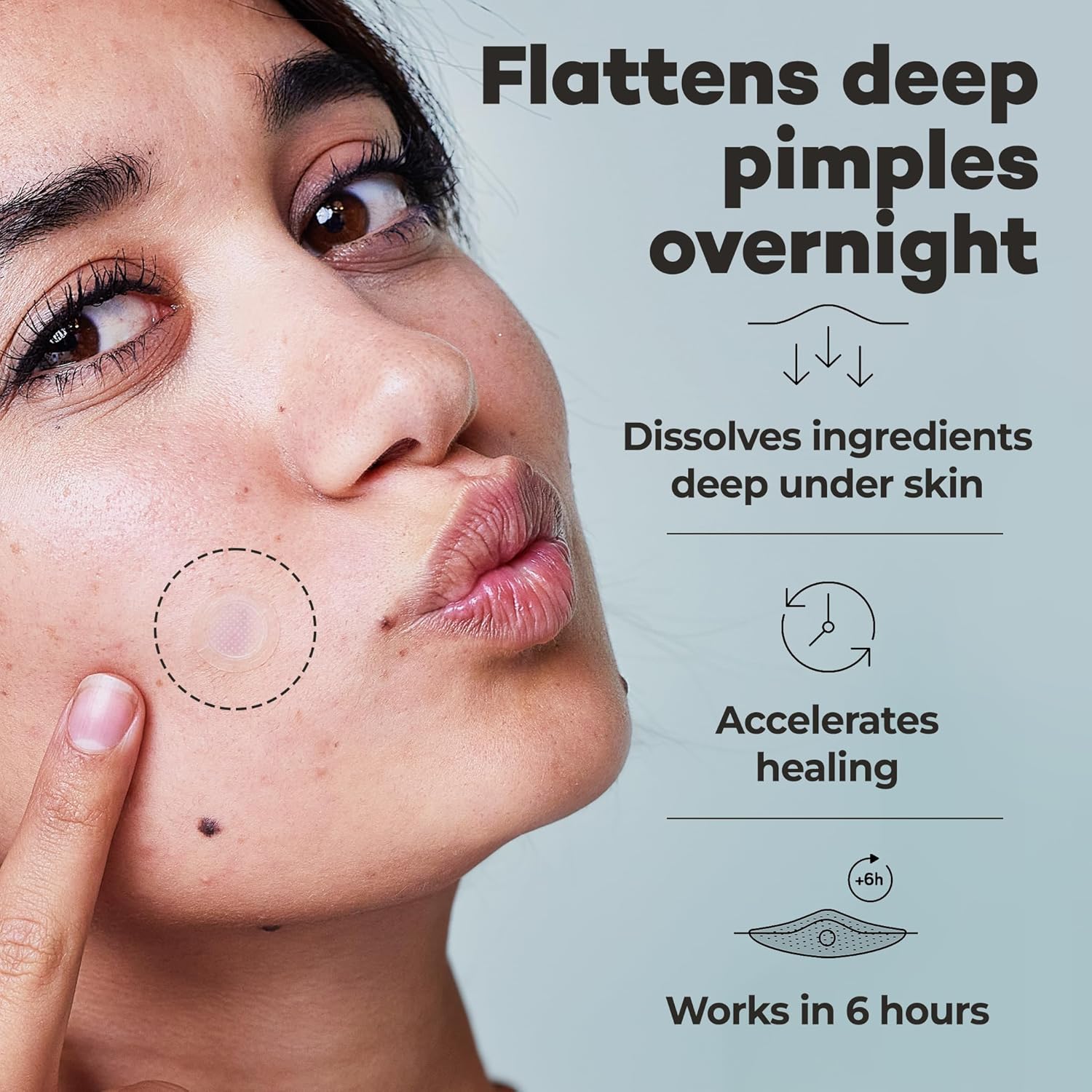 • Deep Penetration. Our pimple patches have 173 innovative self-dissolving microcrystals. They dissolve acne-fighting active ingredients deep under your skin. Our acne patches have Niacinamide, Hyaluronic Acid, and Centella Asiatica. This cystic acne patch is great to use overnight.