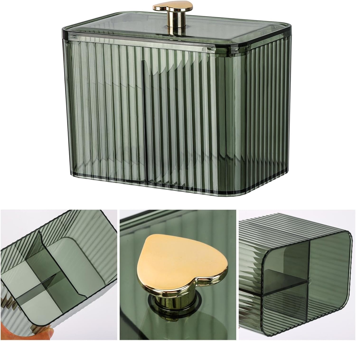 • 【Modern Design】 This container has lovely gold heart handle, elegant non-slip wavy bottle body, dustproof, easy to open and close.