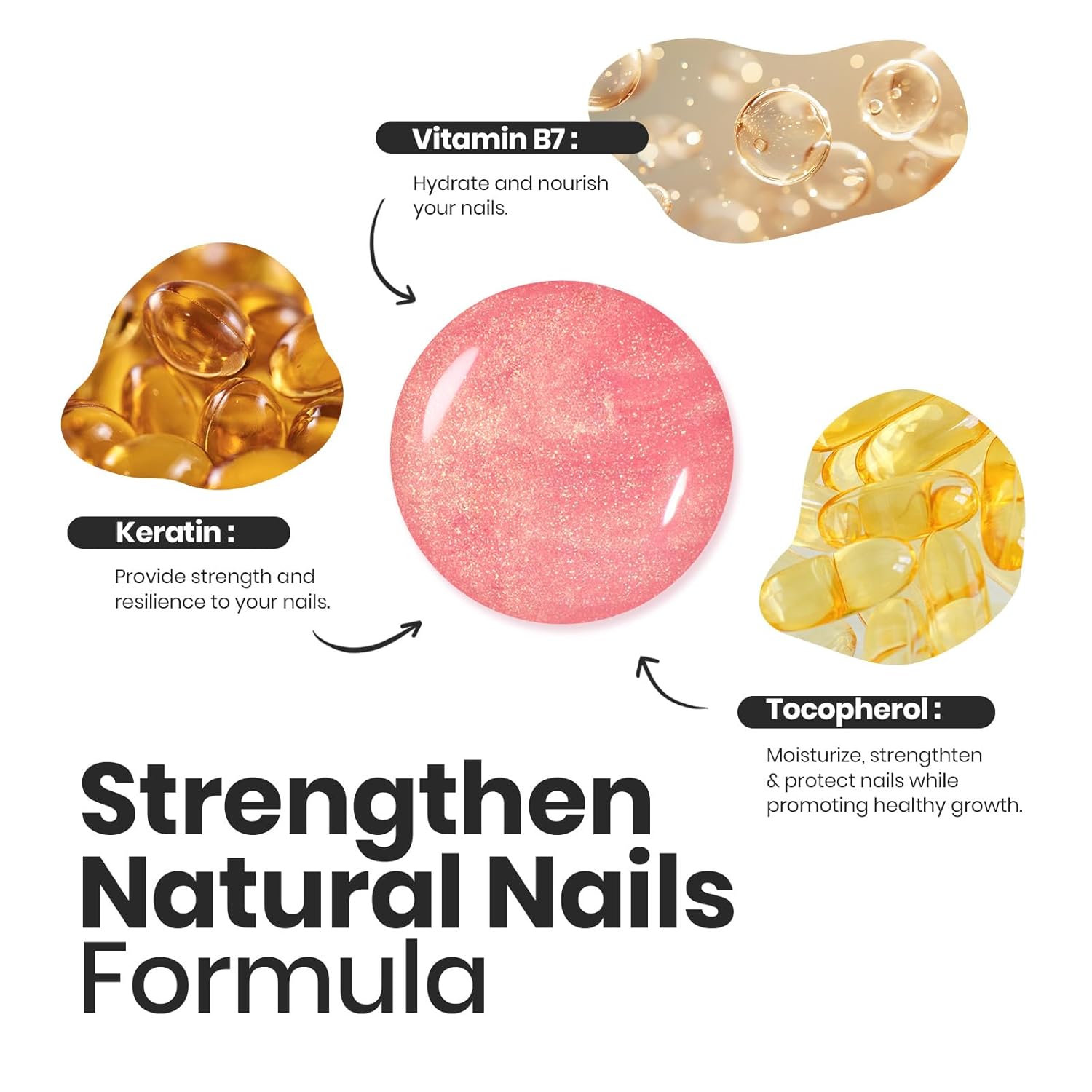 • 【Nail Care Ingredients】This healthy nail polish formula contains at least 3 ingredients to protect nails, which can strengthen and thicken nails and accelerate nail repair, so that your nails have a beautiful appearance and also make your nails healthier!
