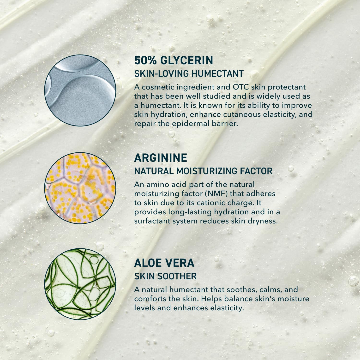 • DEEP HYDRATING FORMULA: Advanced body and face cleanser featuring 50% glycerin concentration, a powerful humectant for intense moisture retention and elasticity. Clinically proven to provide 24-hour hydration while supporting skin's natural pH balance and moisture barrier.