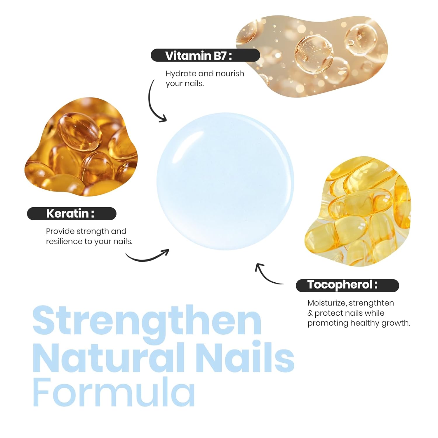 • 【Fast Drying, No UV Needed】: Say goodbye to UV lamps and long waits. Our quick-dry formula natural nail strengthener polish sets in 1–2 minutes—just apply and go. Ideal for fast touch-ups, travel, or last-minute events. Use with base and top coat (sold separately) for best results.