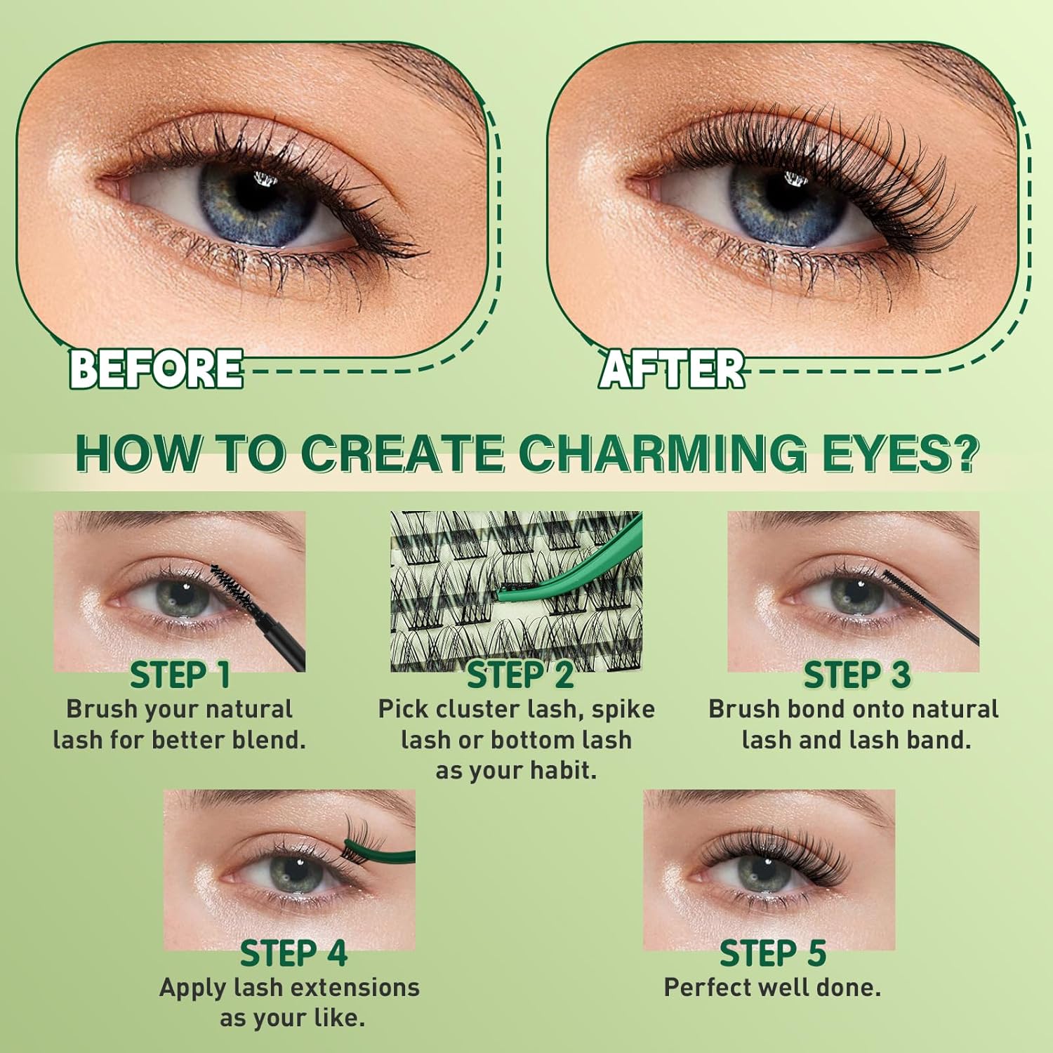 • Easy to Wear &Remove:Very easy to apply the cluster lashes with the brush included in the kit,the lash bond and seal extend the wear up to 3-4 days and the remover is very easy to remove the lash cluster and will not hurt the eyes