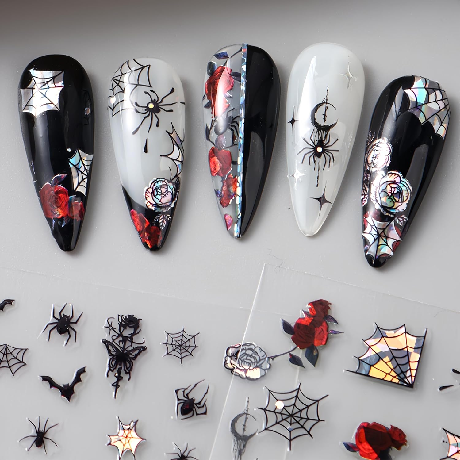 • Halloween Nail Stickers- You will get 6 sheets halloween glitter spider web nail art stickers for acrylic nails supply, many pattern for you to choose, colorful scorpion nail designs, and satisfy your rich imagination of nail DIY