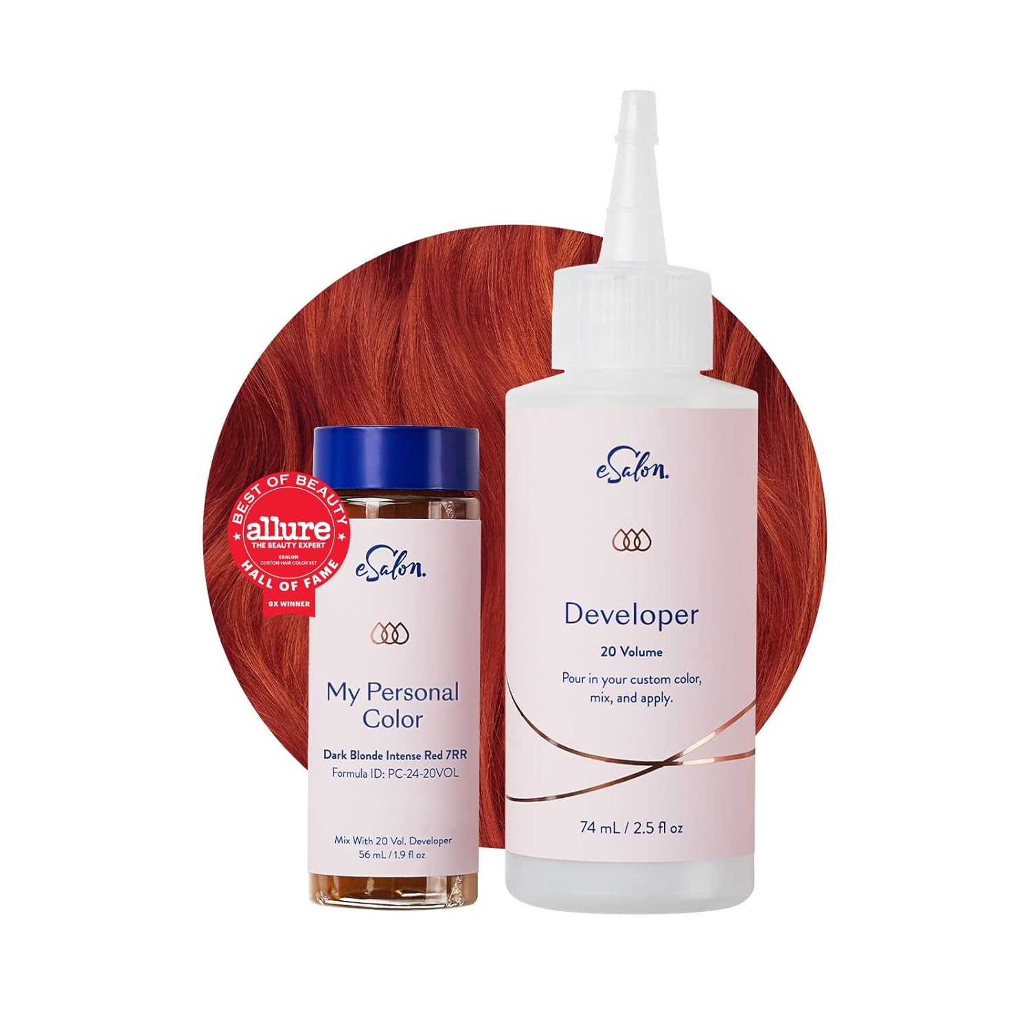 eSalon Permanent Hair Color & Hair Dye Complete Kit - Personal Colorist Kit for Up To 100% Gray Coverage for All Hair Types - Professional-Grade Ammonia-Free Hair Dye (Dark Blonde Intense Red 7RR)