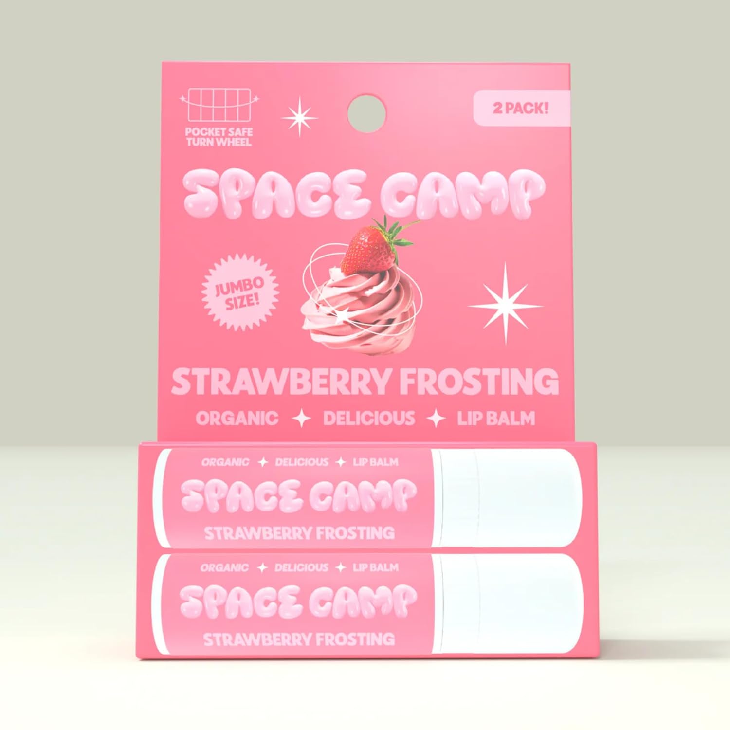 Space Camp Wellness Jumbo Lip Balm - Strawberry Frosting Organic Flavored Balm (2 Pack)