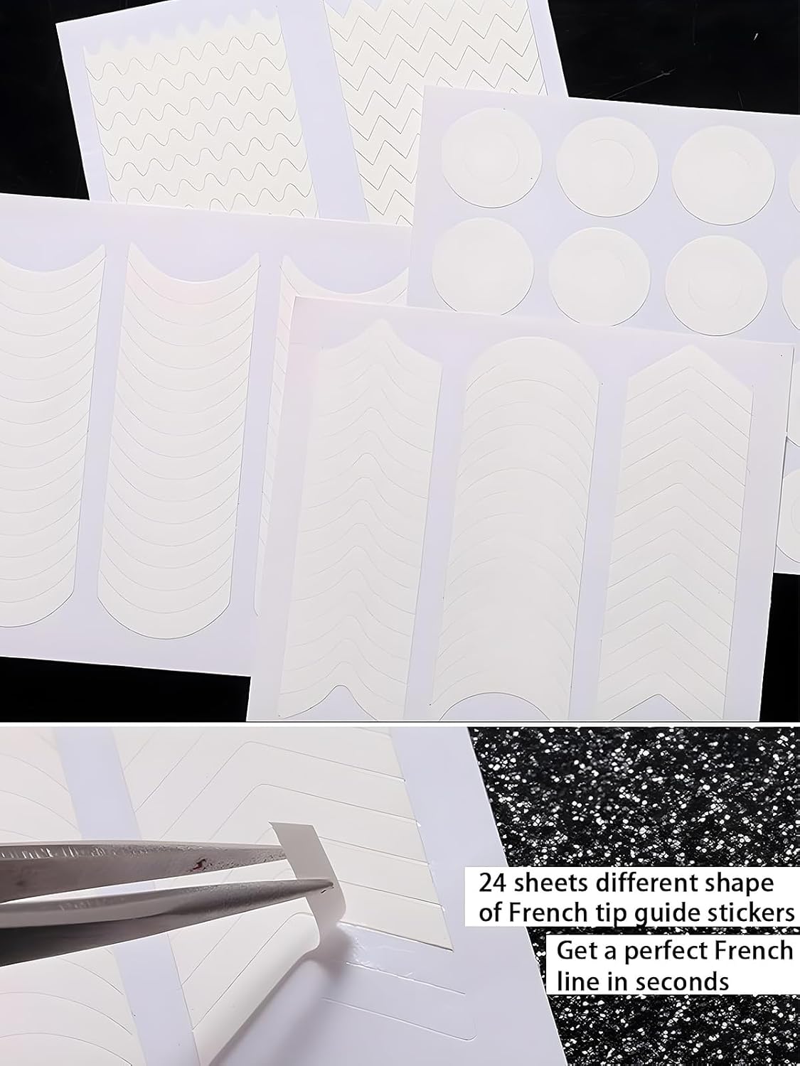 • Complete French Manicure Kit: This all-in-one kit includes everything you need for stunning nail art: 1 dual head nail tip stamp, 2 replacement stamper heads, 4 dual-ended nail brushes, and 24 French nail stickers—perfect for creating salon-quality designs at home.