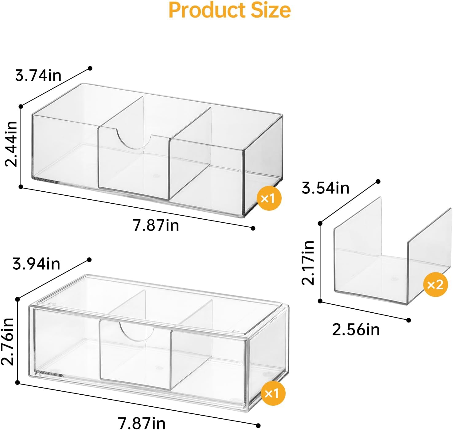 • Item Details: This 2 tier medicine cabinet organization set includes top clear compartment box ×1, size: 7.87×3.74×2.17 in; and bottom clear drawer compartment box ×1, size: 7.87×3.94×2.76in; also comes with two adjustable compartmentalized tier pieces