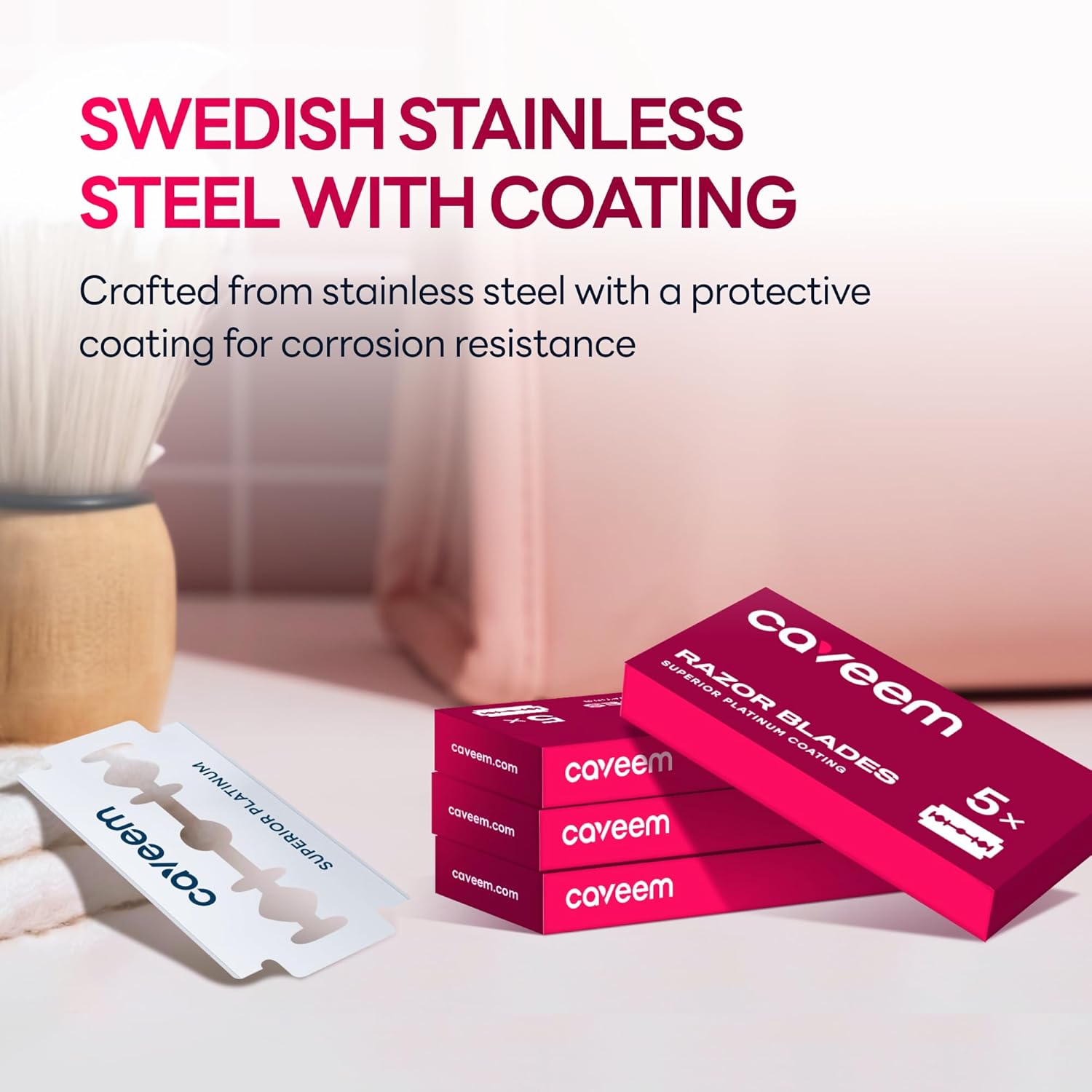 • ENDURABLE BLADES: Caveem's double-edge razor blades are crafted from stainless steel and feature rust-resistant coatings for durability and corrosion-resistant performances.
